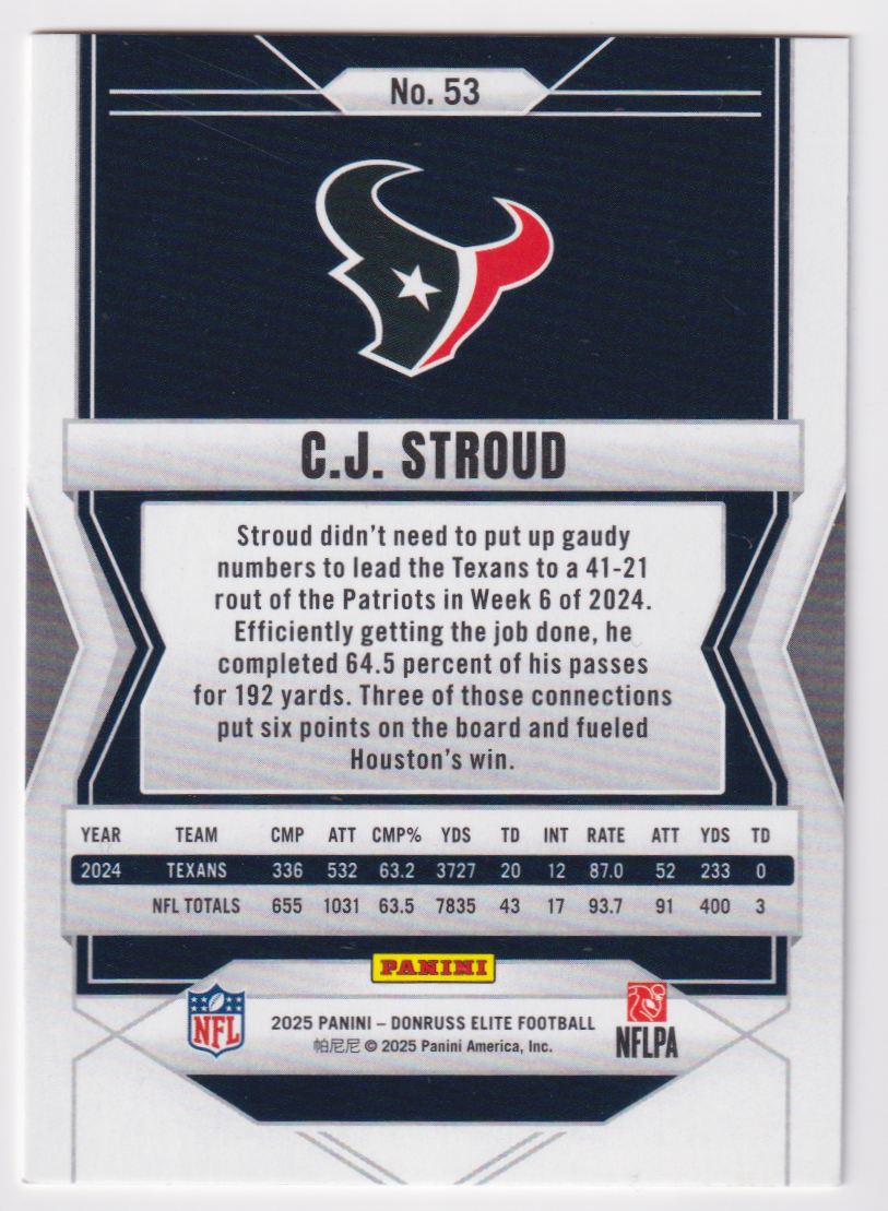 | 2025 Donruss Elite C.J. Stroud Houston Texans #53 |