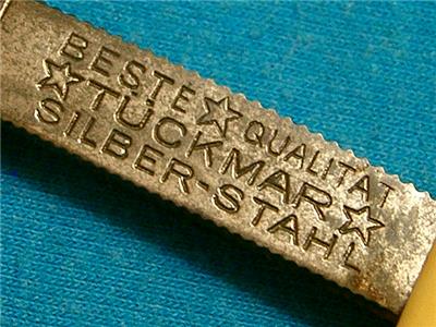 - TANG STAMPS : BEST QUALITY TUCKMAR STARS SILBER - STAHL WELT RUF SHULTZMARKE 157 SOLINGEN GERMANY TRADE MARKS ON TANGS AND BLADE. SEE PICS.