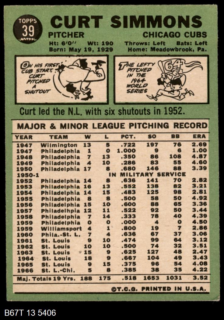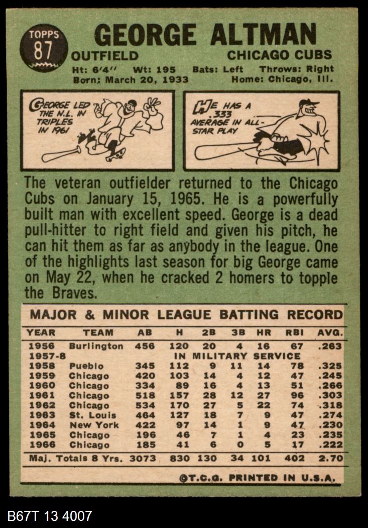 This is a 1967 Topps Chicago Cubs Near Team Set. Dean's Cards has designed our Near Complete Team Sets using the majority of cards for that team - leaving out the expensive super-star rookie cards, high numbers, short-prints, and multi-player rookie cards, reducing the price. the other cards can then be added, from our inventory of over a million cards, as your budget allows. For the exact cards contained in this set, as well as their front and back scans, please see the description below.