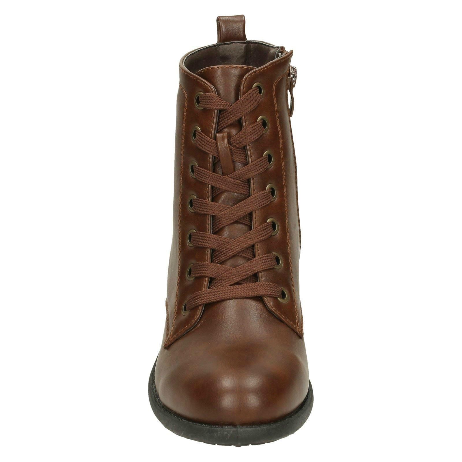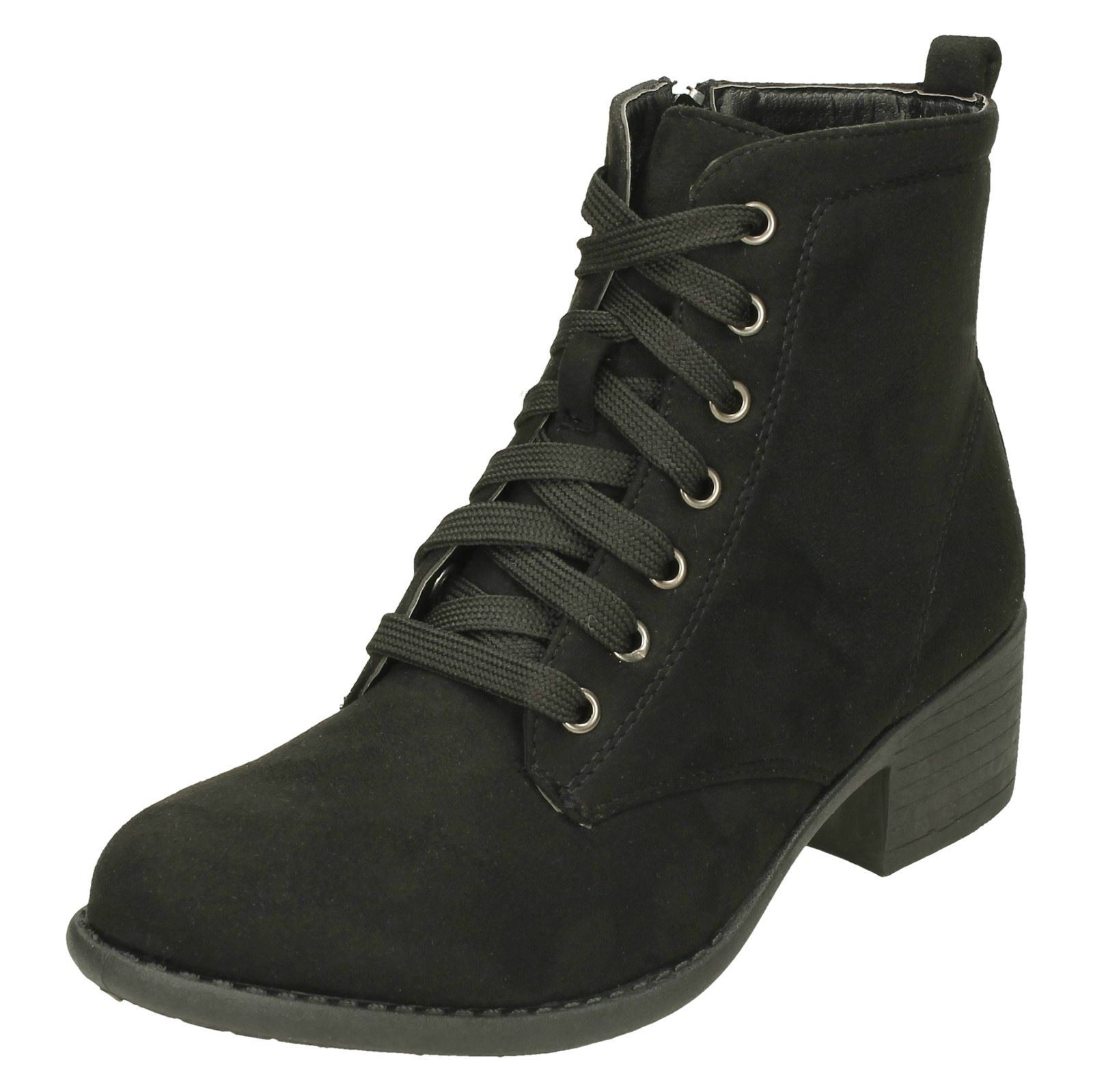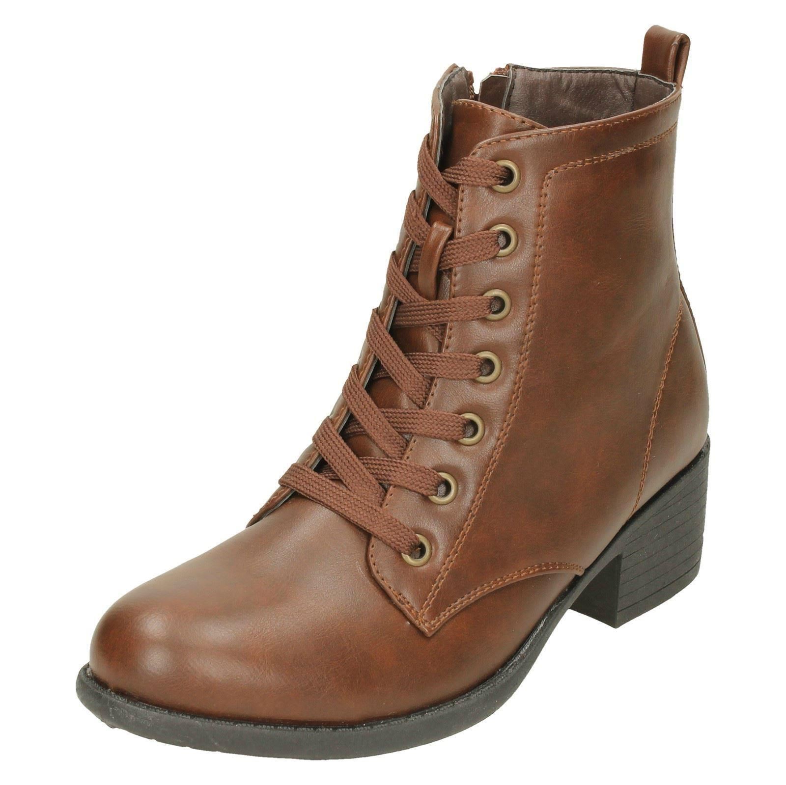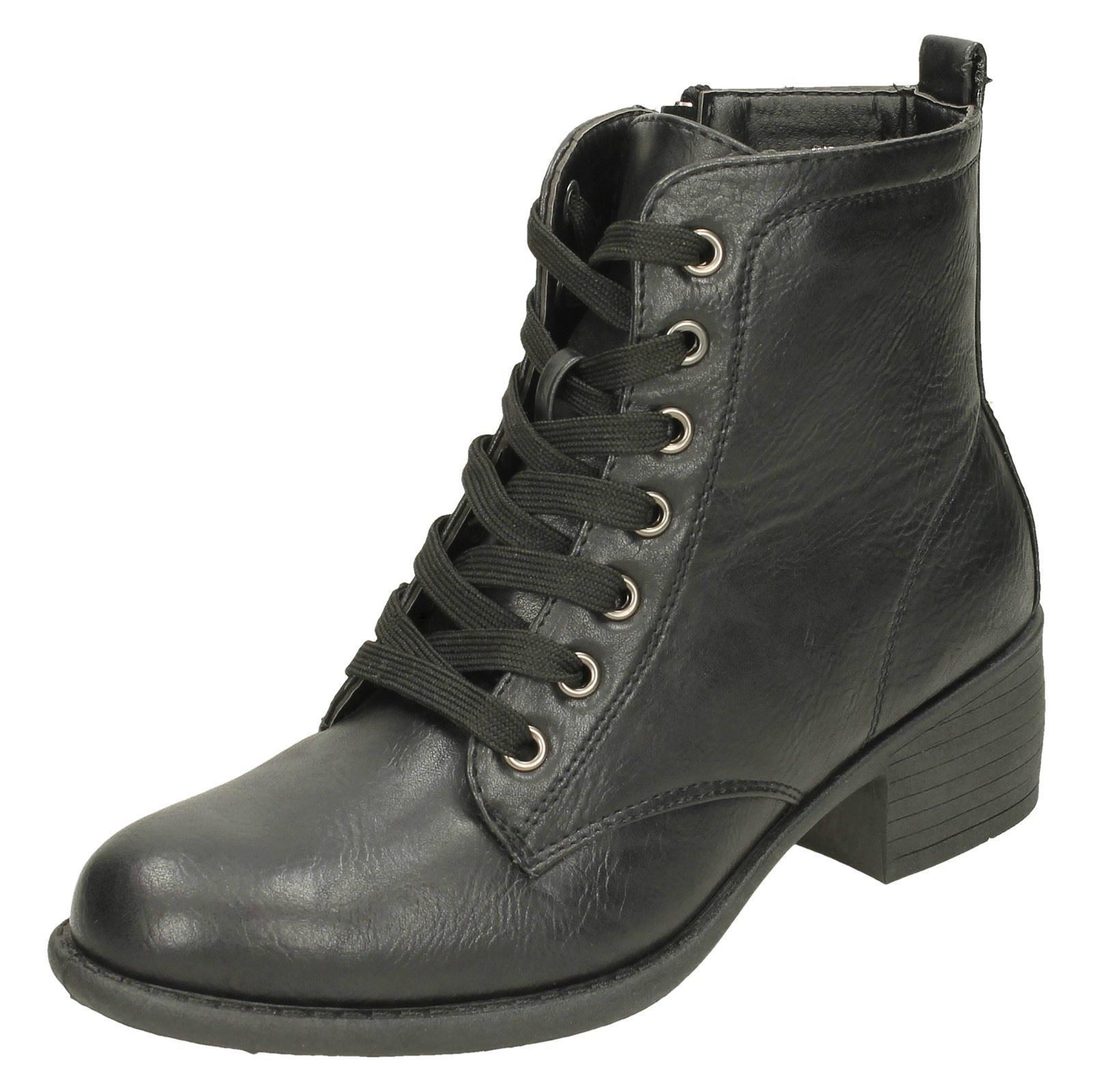 Ladies Spot On Lace Up Ankle Boots With Mid Heel