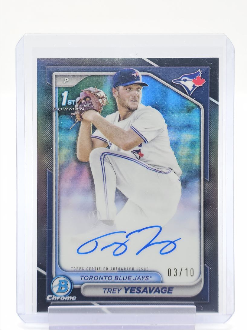 TREY YESAVAGE 2024 BOWMAN CHROME DRAFT 1ST TRUE BLACK AUTO /10 Q1940