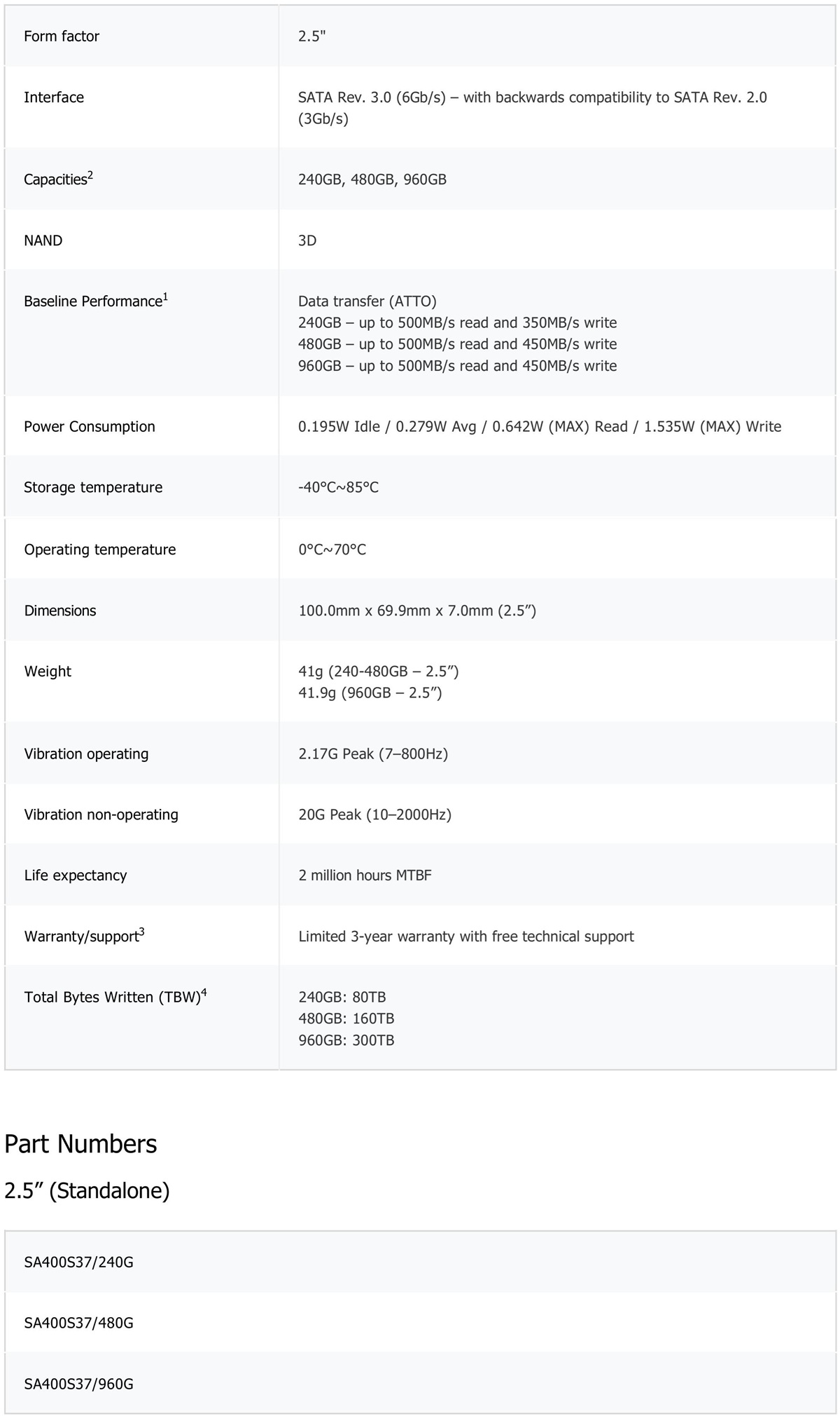 Product Specifications
