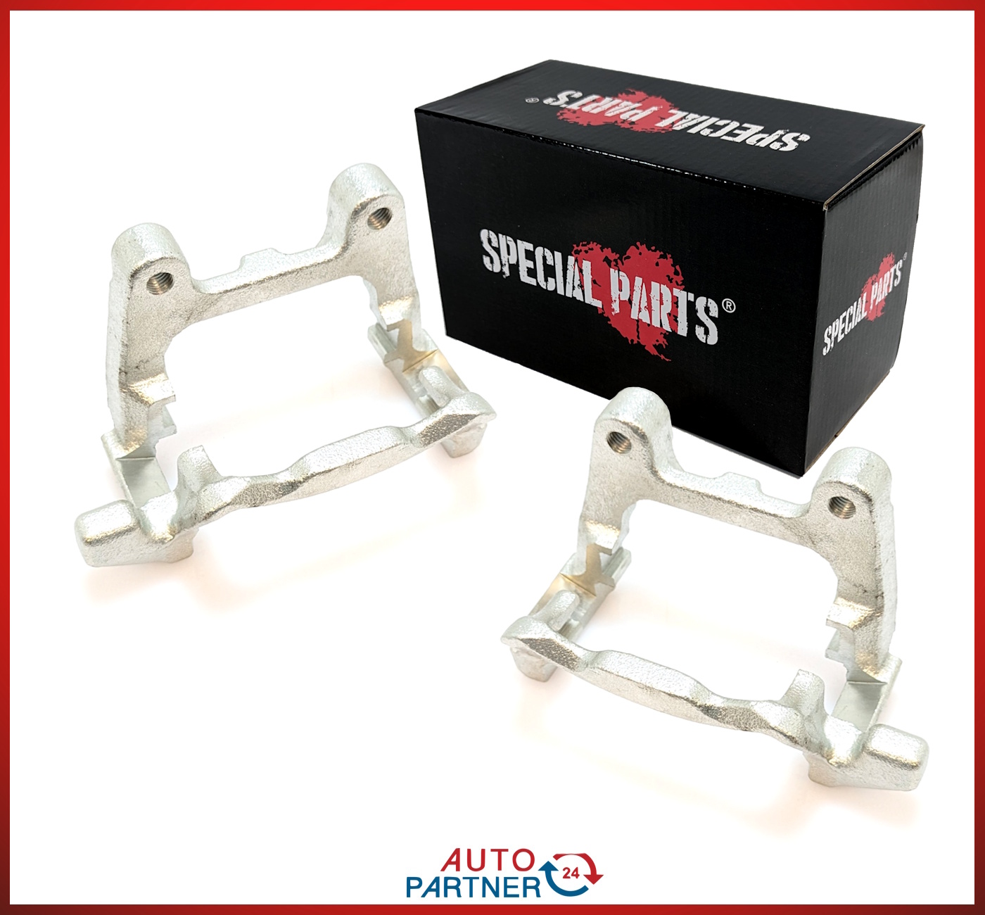 Kompletter Satz Bremssattelhalter von Special Parts als Neuteil, passend für den Umbau auf die 310 mm-Bremse an die Hinterachse vom VW Golf 5 + 6 + 7 und Audi A3.