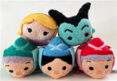 New Disney Pixar Sleeping Beauty Set of 5 Mini Tsum Tsum 3.5” Stylized Plush Toys