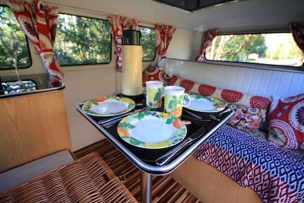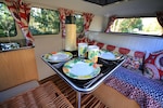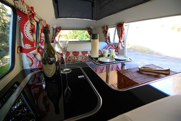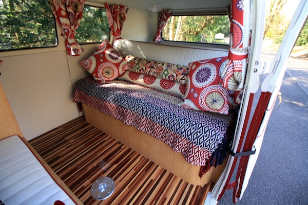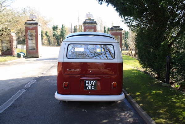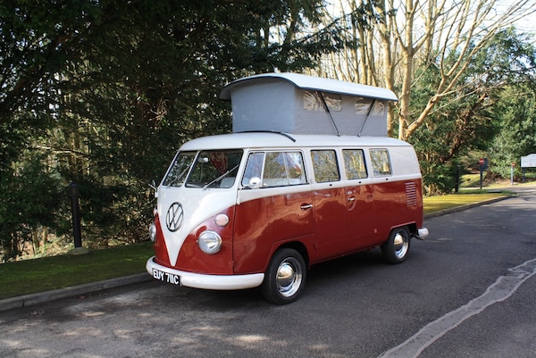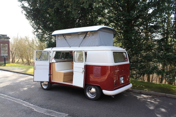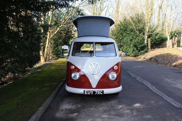 1965 VW Split Screen Camper Van. German Built & Factory Right Hand Drive. Pop Top Roof. Fully Restored. The absolute ultimate VW Split Screen Camper Van! Fully restored to the highest possible standard and specification here at UK Sports Cars. If you are looking to buy one of these, make no mistake that this is the one to have from all angles but especially in terms or specification. To start with, this is a 100% Genuine German built and factory supplied Right Hand Drive bus delivered to the UK in 1965. The original identification plate is present to confirm its authenticity from factory. Even the original paint sticker on the bulkhead is still intact! These kind of rare original features hold crucial significance when buying one of these. Before restoration began, this was without a doubt the most solid UK Right Hand Drive bus we have ever seen, almost as though the bus had been time warped from the 1960s. The previous owner was a long time employee of Alan Schofields Ltd, who are one of the most renowned Classic VW parts suppliers in the country, so it was expected that the bus would have been very carefully selected from the off.This bus formed an ideal basis for a sympathetic restoration, so we stripped back the entire shell and fully repainted it in year correct and all time favourite original Volkswagen colours, Titian Red & Beige Grey. The paintwork has been prepared to a glass like shine throughout and looks stunning from every angle.At the same time we decided to fit a vertically elevating pop top roof conversion, which is one of the most popular conversions / upgrades you can do to a split screen, allowing for additional space inside. The Space Roofs vertical pop top roof conversion is an amazing product featuring gas strut assisted elevation, a high quality fabric canvas with zip opening plastic windows all round to let light in and allow for ventilation, grab handles throughout and an insulated roof lining to finish off the inside. This makes for an enormous difference in comfort when camping.This is a bus we sold to a customer of ours a few years ago who has kept it since in a heat controlled garage on a trickle charger and only used in on special occasions, ensuring it has been maintained meticulously throughout his ownership.Mechanics & ElectricsNew 12V wiring loom installed with all electrics working in superb order.New 1641cc engine with all new ancillaries fitted at the time of restoration. The engine has been gently run in. This is the ultimate engine for a split screen bus in our opinion offering a good power output whilst retaining the air cooled originality that these buses are renowned for.Bespoke Camping InteriorComplete with one of our bespoke interiors hand built from scratch by our team featuring the following specification:Brand new headliner professionally installed and trimmed neatly down to the waistline of the bus in year correct original style perforated off white vinyl material. Extensive upholstery throughout entire vehicle in matching Beige Grey Vinyl with Titian Red piping. This includes a ten piece door card set with decorative fluting on the cab and cargo door cards, 3 piece bed cushion set in memory foam for a comfortable bed, rear twin facing seat and back rest and original front seats.Full width Rock n Roll Bed complete with our bespoke curved oak skirting board to sit flush with frame. This is a 3 person seat that folds down into a luxurious and comfortable six foot double bed.Bespoke cabinet veneered in the highest quality oak with high gloss black Formica top and cupboard housing a double gas burner unit. Twin facing rear seating allowing for a total of 5 people to sit around the table.High gloss black Formica table with chrome pedestal arrangement allowing detachment of table with ease. Designated storage space for table inside cabinet. Table finished with period Devon edging trim and black insert.12V Leisure Battery in engine bay complete with the highest quality Split Charge relay system enabling both batteries to remain charged whilst the engine is running.Full curtain track set and 1960s style psychedelic curtains (black outlined) with tie backs.Even though no longer required by law, the bus will come with an MOT certificate to offer complete peace of mind. Road tax fee exempt and cheap to ensure. Delivery anywhere can be arranged. Contact us today. Buy with confidence with 54 years of classic vehicle experience and 100+ 5 star Google reviews.