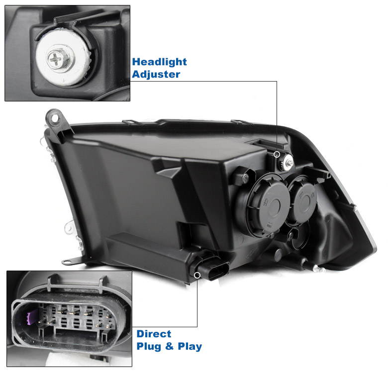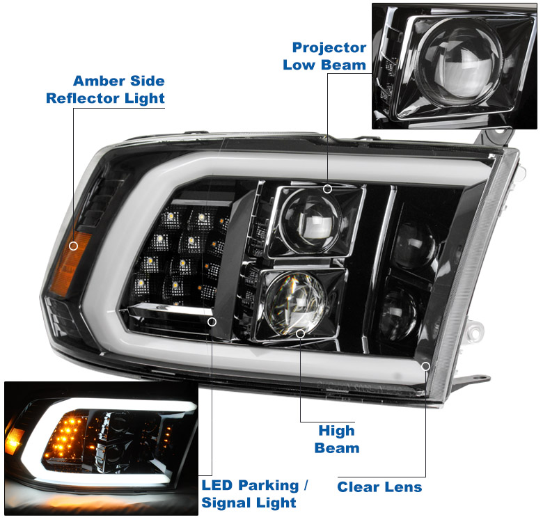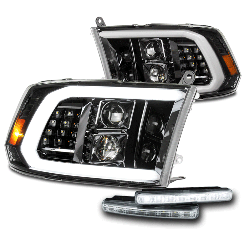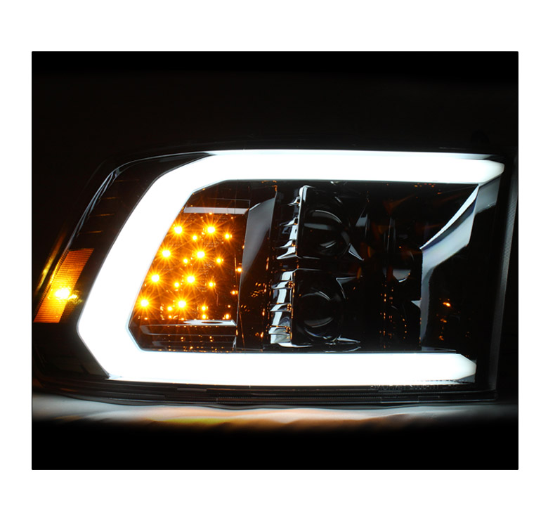 Suitable For 2010-2018 Dodge Ram 1500 2500 3500 LED Tube Projector Headlights w/6" White LED DRL - Gun Metal