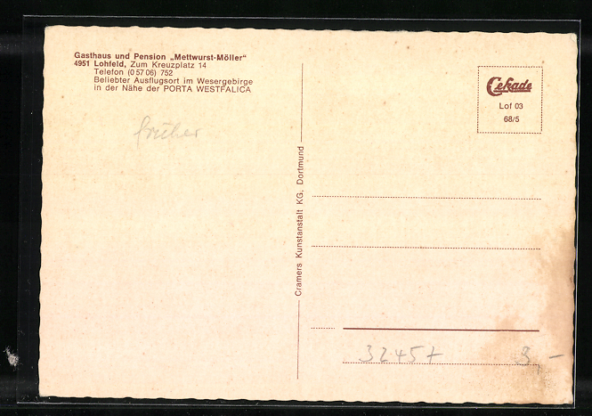 AK Lohfeld / Porta, Gasthaus und Pension Mettwurst-Möller, Zum Kreuzplatz 14