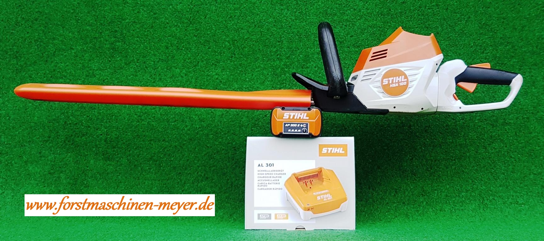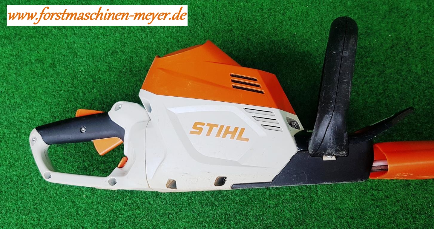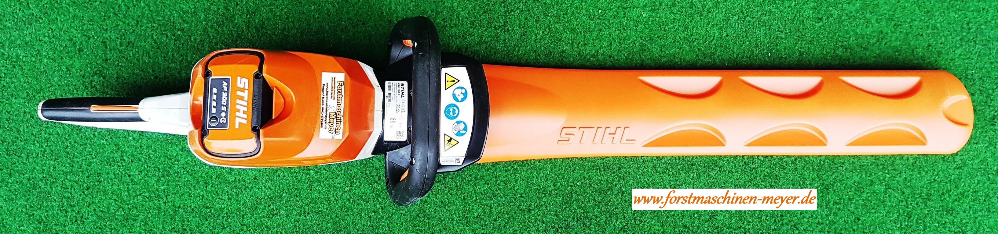 Stihl HSA 100 mit AP 300 S (NEU) und AL 301 (NEU) Präzise im Trimm- und Rückschnitt zur Pflege großer HeckenDie Akku-Heckenschere STIHL HSA 100 bietet für den Garten- und Landschaftsbau und für Kommunen eine effektive Unterstützung, um effizient und komfortabel in lärmsensiblen Bereichen große Hecken zu schneiden und zu trimmen. Die STIHL HSA 100 ist eine sehr leistungsstarke Heckenschere mit einem wartungsfreien EC-Motor. Der Motor wird von Lithium-Ionen-Akkus aus dem STIHL AP-System angetrieben. Er liefert auch unter Last stets eine konstante Hubzahl, selbst beim Schneiden dickerer Zweige. Das doppelseitig geschliffene Schneidmesser liefert präzise Schnitte, sowohl im Trimm- als auch im Rückschnitt. Wenn hartnäckige Zweige das Messersystem blockieren, können Sie durch einen Drehrichtungswechsel Ihre Arbeit schnell wieder fortführen. Per Knopfdruck können Sie den Multifunktionsgriff um jeweils 90° nach links und rechts drehen und mit Ihrer STIHL HSA 100 besonders ergonomisch in verschiedene Richtungen schneiden, beispielsweise beim Seiten- oder Kopfschnitt. So wkönnen Sie Ihre Heckenschere sowohl mit der rechten als auch mit der linken Hand einfach führen. Der Bügelgriff unterstützt zusätzlich ein kräfteschonendes Arbeiten mit der Heckenschere. Das STIHL Antivibrationssystem mindert auftretende Motorschwingungen und schont so in längeren Arbeitseinsätzen Ihre Muskeln und Gelenke. Ein aufgeschraubter Schnittschutz reduziert das Risiko des Kontakts mit den Schneidmessern und unterstützt so das sichere Arbeiten mit der HSA 100 von STIHL. Beim Schneiden in Bodennähe oder an Mauern wird die Schneidgarnitur durch den aufgeschraubten Führungsschutz gegen Verschleiß geschützt. Die Akku-Heckenschere HSA 100 hat eine Schnittlänge von 60 cm.