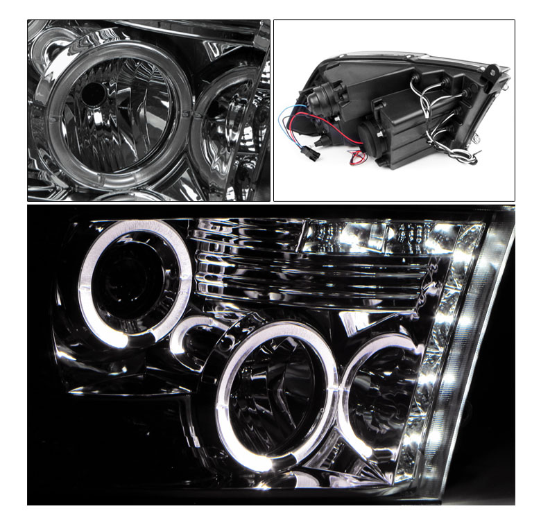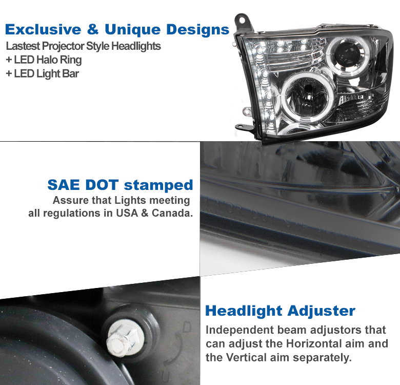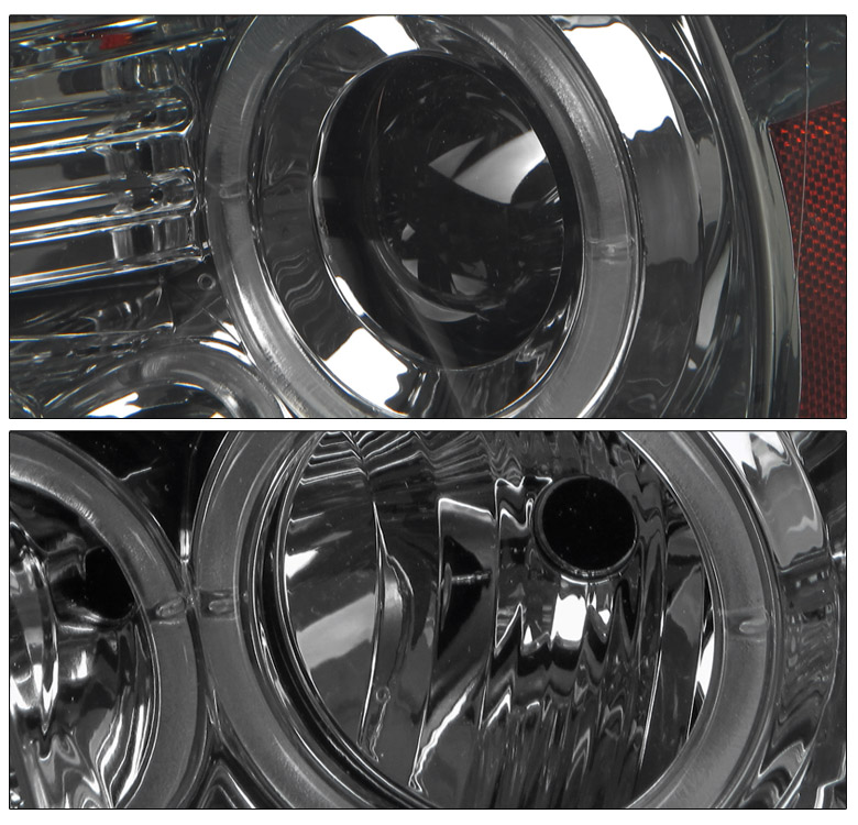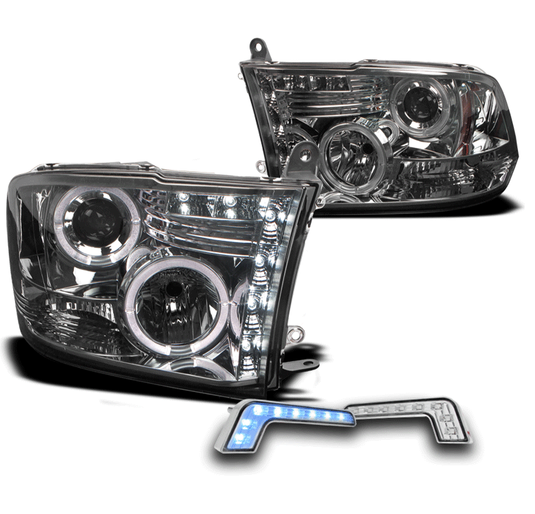 Suitable For 2009-2018 Dodge Ram 1500 / 2010-2018 2500 / 3500 LED DRL Halo Projector Headlights with 6.25" Blue LED DRL Lights - Smoke