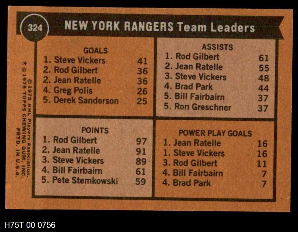 This 1975-76 Topps New York Rangers Near Team Set contains the majority of the New York Rangers cards and makes the perfect gift for the New York Rangers fan. ?With an inventory of over 20,000 team sets, Dean's Cards has Team Sets & Near Team Sets in multiple conditions.
