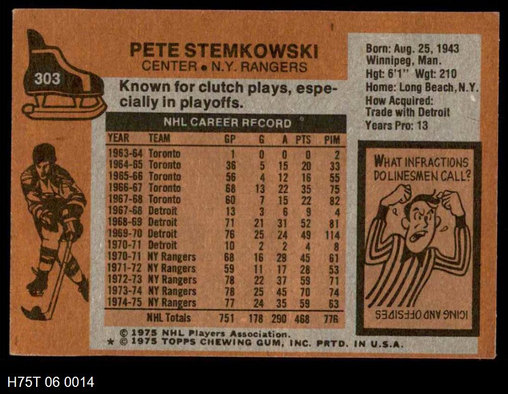 This near team set contains 13 cards out of the possible 17 cards. This is not a complete set. This set does not include the following cards: #73 Derek Sanderson, #94 Rangers Team Checklist, #128 Walt Tkaczuk, #243 Jean Ratelle