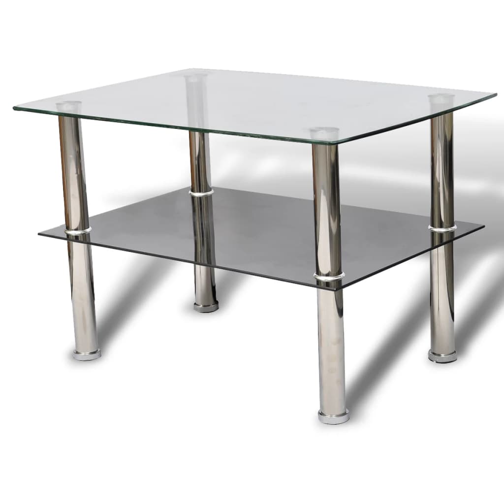 This glass coffee table / side table can be placed at commercial locations, such as canteen, cafe, bar, hotel, and in your home. Its trendy 2-tier design makes it a great addition to any environment. The coffee table is designed with tempered glass and sturdy stainless steel legs. There is sufficient space between the tabletop and the shelf for keeping your belongings.
