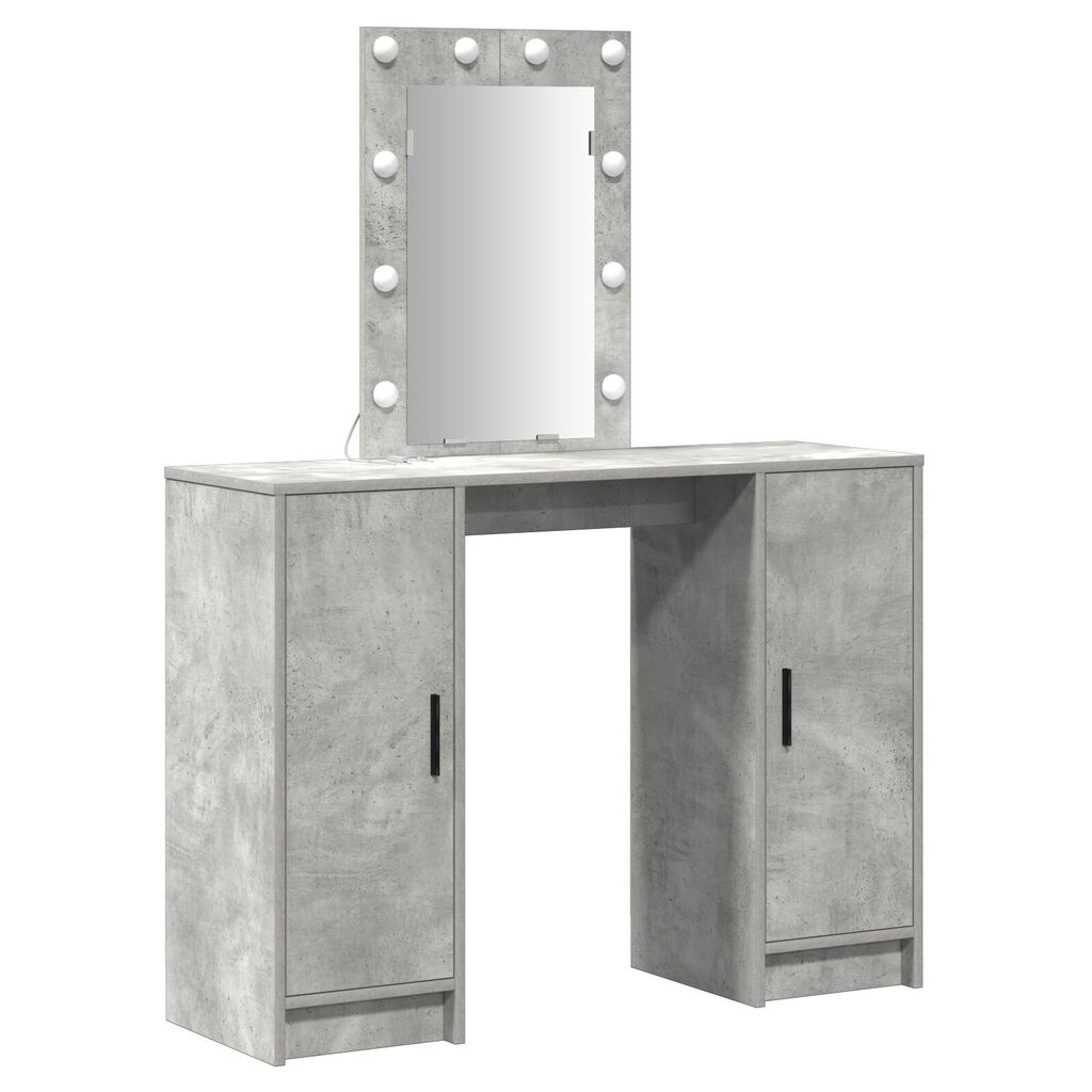Dieser coole rechteckige Waschtisch bringt frischen Wind in deinen Schlaf- oder Pflegebereich. Er verbindet Funktionalität und Stil und hat ein schlankes, mattes graues Finish sowie integrierte LED-Leuchten. Perfekt für Erwachsene, die ihre Pflege-Routine aufpeppen und Eleganz in ihren Raum bringen möchten. Die Waschtisch-Einheit hat integrierte LED-Lichter, die dir klare und helle Reflexionen für das Auftragen von Make-up geben. Mit zwei Türen bietet sie viel Stauraum, damit deine Beauty-Essentials ordentlich und griffbereit bleiben, was dir deine Morgenroutine erleichtert. Das schlanke Design und die warmen Grautöne passen gut zu verschiedenen modernen Einrichtungsstilen und heben jeden Raum hervor. Hergestellt aus hochwertigem MDF und Spanplatte, ist die Waschtisch-Einheit robust genug für den Alltag und sieht dabei schick aus. Mit 102 cm Länge hat sie ausreichend Platz für deine Waschtischbedürfnisse, ohne deinen Raum zu überladen.