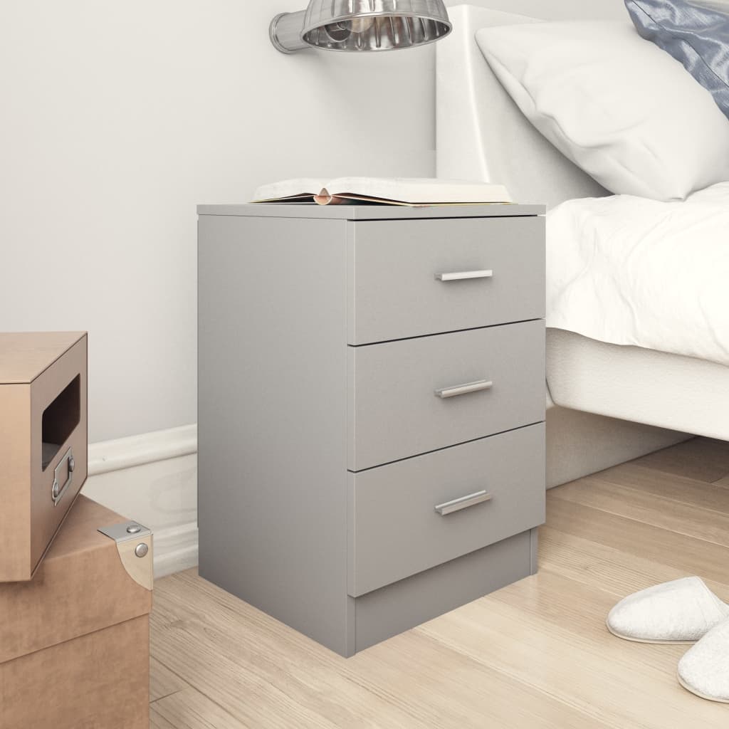 Bring a classic charm into your interior with our bedside cabinet! Made of quality board, this nightstand is sturdy, durable and versatile. As a universally applicable chest, you can also use it as a couch table in the living room. Three drawers provide ample storage space for keeping your magazines, books, remote controls and other small items well organised and within reach. Additionally, this bedside cabinet is easy to clean with damp cloth. Upgrade your interior to the next level with our elegant nightstand! It is easy to assemble with included mounting materials.