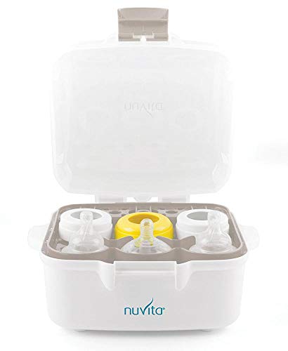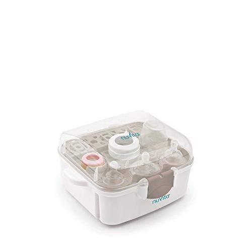 Nuvita 1085 Sterilizzatore a vapore per biberon, ciucci ed accessori per forno a microonde - Sterilizza fino a 3 biberon a collo largo in 2 minuti - Compatto e portatile, è dotato di maniglie anti-ustioni ed è privo di BPA e Ftalati
