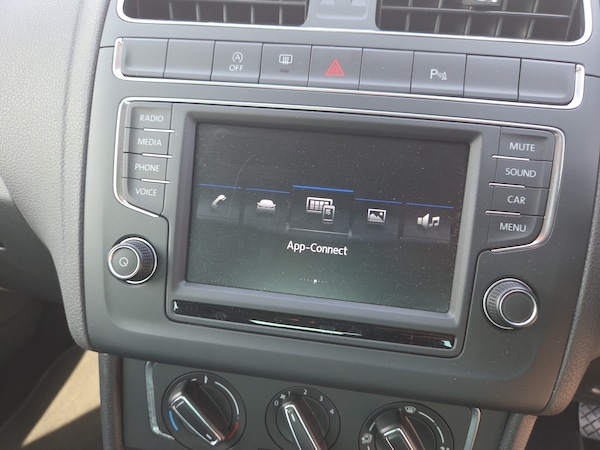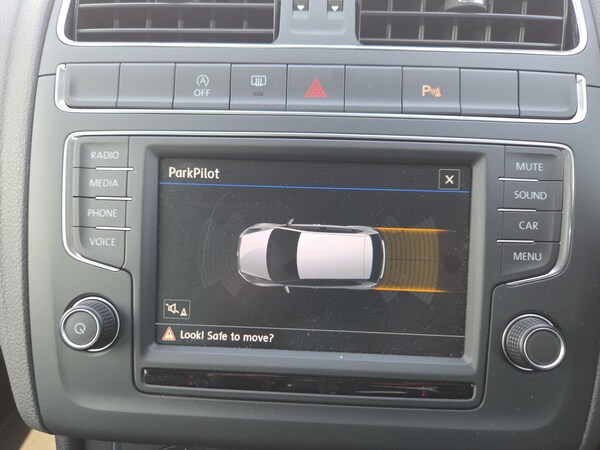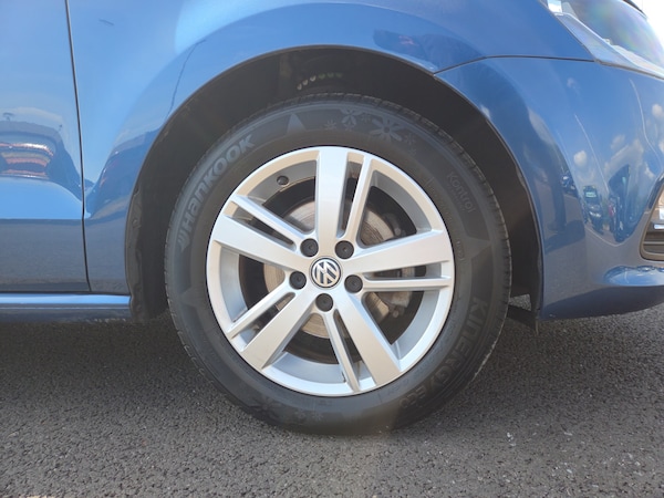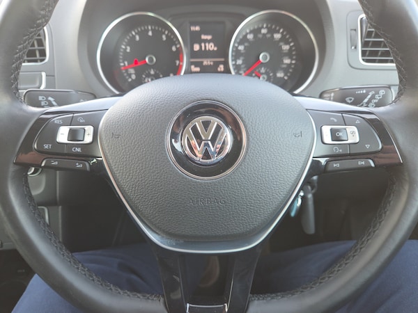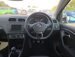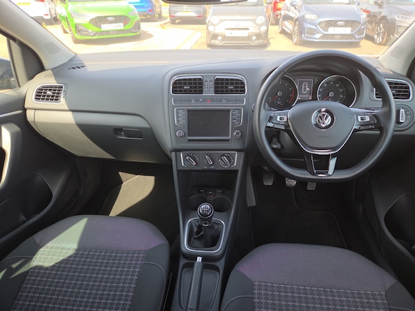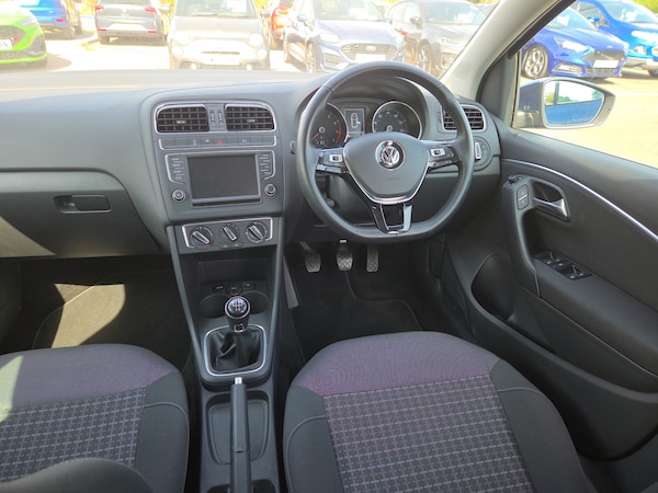 ..App-Connect, Bluetooth Telephone preparation, Driver alert system, Multi function display, Multifunction computer, PAS - speed related, Service interval indicator, Ultrasonic front and rear optical and audible parking sensors, Warning buzzer and light for front seatbelts unfastened, 6 speakers, Composition media system with radio, glovebox mounted CD, colour touch screen, SD card, aux-in, USB, multimedia interface, DAB Digital radio, Black grille with chrome surround, Body colour bumpers, Body colour door handles, Body colour door mirrors, Body coloured side sills, Chrome trimmed front air intake surrounds, Electric folding door mirrors, Electric front windows, Electric operated/heated door mirrors, Front fog lights with static cornering function, Front wash/wipe with interval delay, Heat insulated tinted glass 65% light absorbing from B pillar back, Heated rear window with auto timer, Rear electric windows, Rear windscreen washer and wiper with interval delay, 12V power socket in centre console, 2 bag hooks in luggage compartment, 2 cupholders, 3 rear head restraints, 3 spoke steering wheel, 4 grab handles, 60/40 split folding rear seat, Centre console storage, Chrome interior door handles, Driver and passenger sunvisors, Driver seat height adjust, Dust/pollen filter, Front door pockets, Front passenger seat height adjust, Front seat backrest storage nets, Front/rear reading lights, Glovebox, Height/reach adjustable steering column, Illuminated vanity mirror, Interior light with delay, Isofix Preparation 2 Rear child seats, Luggage compartment cover, removable, Luggage compartment lighting, Matt chrome gear lever gaiter surround, Multifunction leather steering wheel with leather gear knob/handbrake grip, Storage compartment in front doors, Storage compartment in rear doors, Sunglasses holder, Variable boot floor, Light and sight pack - Polo, 3 point height adj front seatbelts + pretensioners, 3x3 point rear seatbelts, ABS, Automatic post collision braking, Driver/front passenger airbag, Driver/Passenger whiplash optimised head restraints, ESC - Electronic Stability Control + traction control, ESP with EDL + ASR, Hill hold control, Hydraulic Brake Assist (HBA), Tyre pressure monitoring system, Alarm with remote central locking and interior protection, Electronic engine immobiliser, Air vents in Matt chrome, Matt chrome interior trim, 15'' steel spare wheel