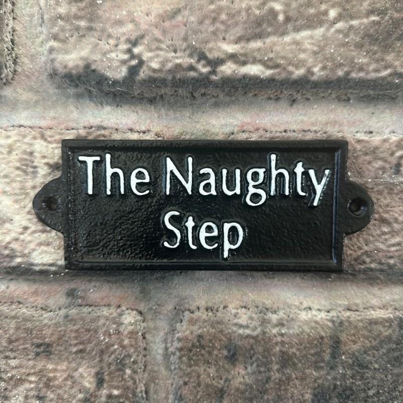 Add a playful touch of humour and classic charm to your home, kitchen, garden, workshop, or man cave with this cast iron “Naughty Step” decorative sign.