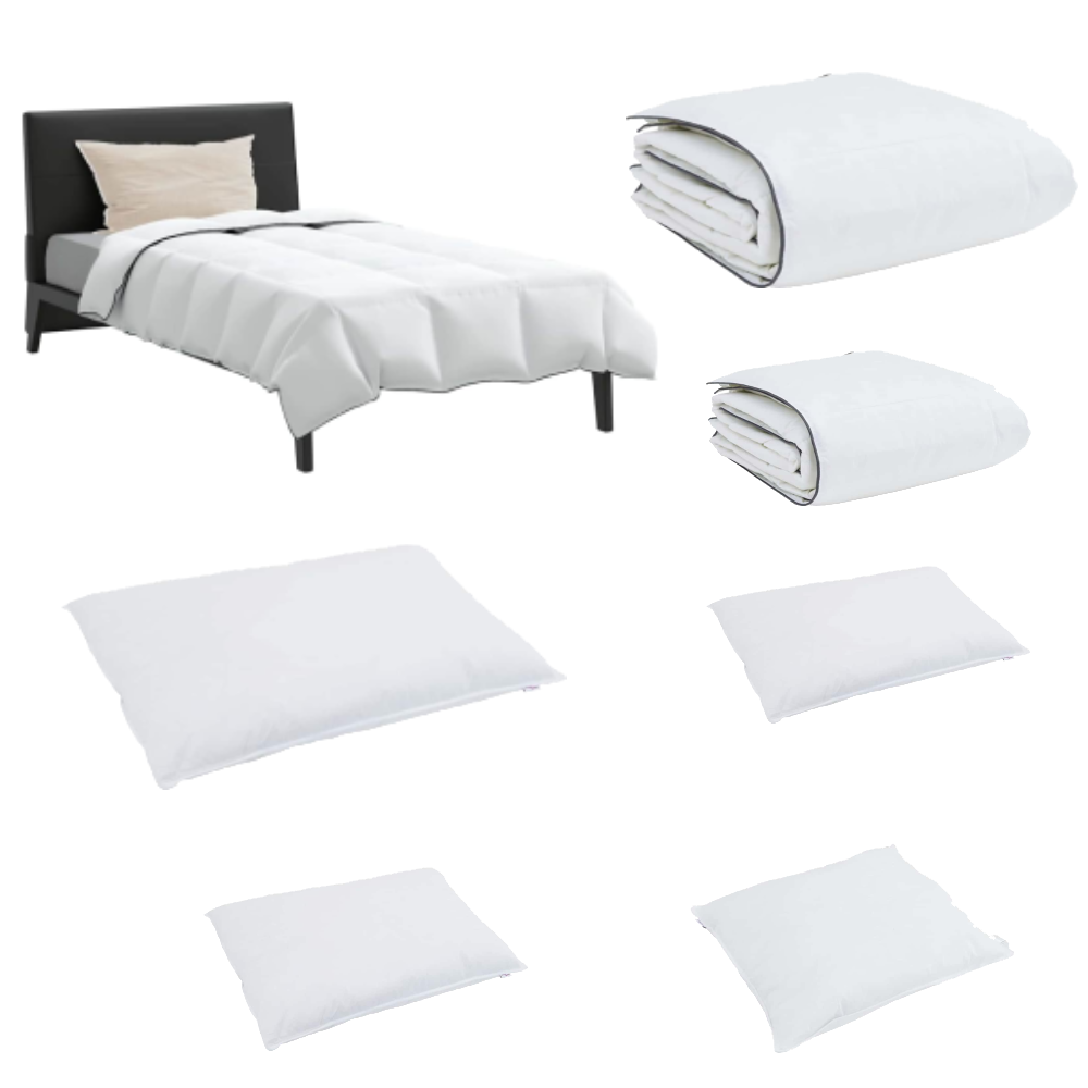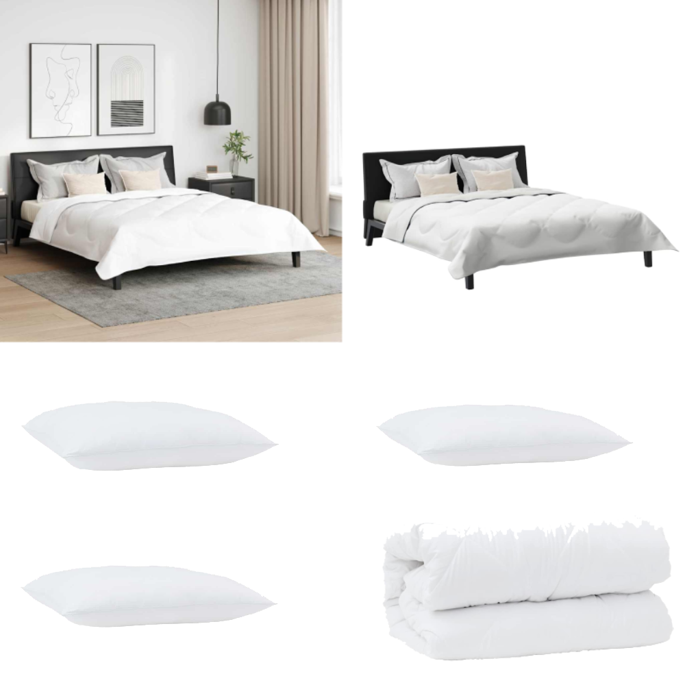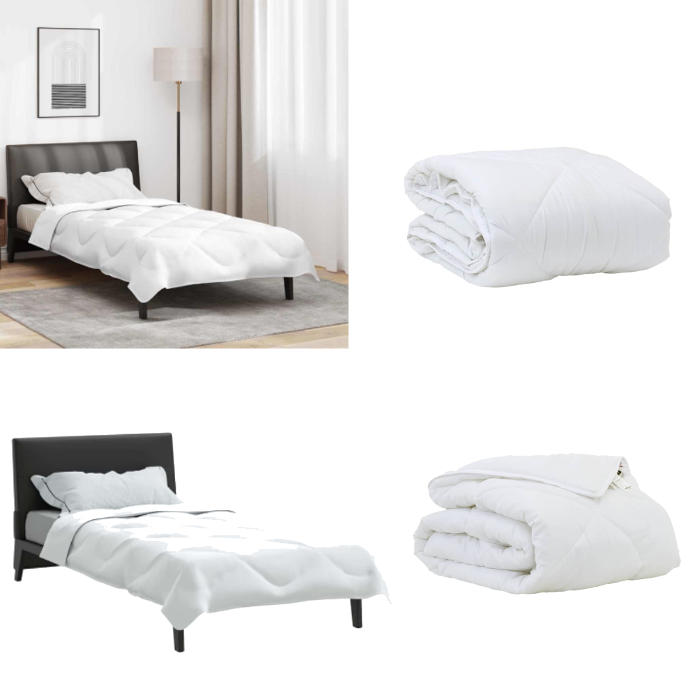 Dieses moderne Duvet und Kissen ist die perfekte Wahl für alle, die nach Stil und Komfort in ihrem Schlafzimmer suchen. Mit seiner rechteckigen Form und dem klaren Design ist es ideal für Leute, die einfache Linien und wenig Schnickschnack mögen. Das strahlend weiße Design vermittelt sofort ein Gefühl von Luxus und lädt dazu ein, am Ende des Tages zu entspannen. Für den Innenbereich gemacht bietet dieses Bettwäsche-Set einen gemütlichen Rückzugsort für alle, die Eleganz und Behaglichkeit wollen. Hochwertige Materialien: Dieses Duvet aus hochwertiger Mikrofaser fühlt sich super weich und luxuriös an und sorgt für maximalen Komfort. Die zusätzliche Baumwollschicht ist atmungsaktiv und nimmt Feuchtigkeit auf für einen angenehmen Schlaf. Komplettes Bettwäsche-Set: Mit einem perfekt passenden Kissen bietet dieses Set alles, was du für ein besseres Schlaferlebnis brauchst. Alle Teile sind so gestaltet, dass sie zusammenpassen und Einheitlichkeit in Komfort und Stil bieten. Atmungsaktiv und bequem: Das atmungsaktive Design des Duvets sorgt für gleichmäßige Luftzirkulation und verhindert Überhitzung nachts. Diese ideale Temperatur sorgt für ruhigen und ungestörten Schlaf. Elegantes Design: Der moderne Stil, der durch Funktionalität und Schlichtheit überzeugt, passt zu jedem Schlafzimmer und wertet die Einrichtung mit klaren Linien und schlichter Eleganz auf. Einfache Pflege: Dieses Duvet-Set ist bis 30°C maschinenwaschbar, was die Pflege kinderleicht macht. Halte es frisch, indem du diese einfachen Waschhinweise befolgst, sodass du lange Freude daran hast.