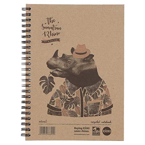 Rhino - Taccuino con copertina rigida in carta riciclata, formato A5,"Save the rhino"