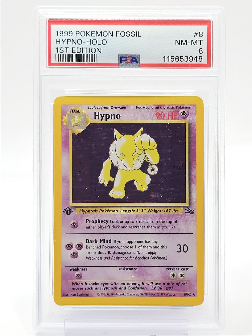 HYPNO 1999 POKEMON ORIGINAL FOSSIL 1ST EDITION RARE HOLO 8/62 PSA 8 Q0004