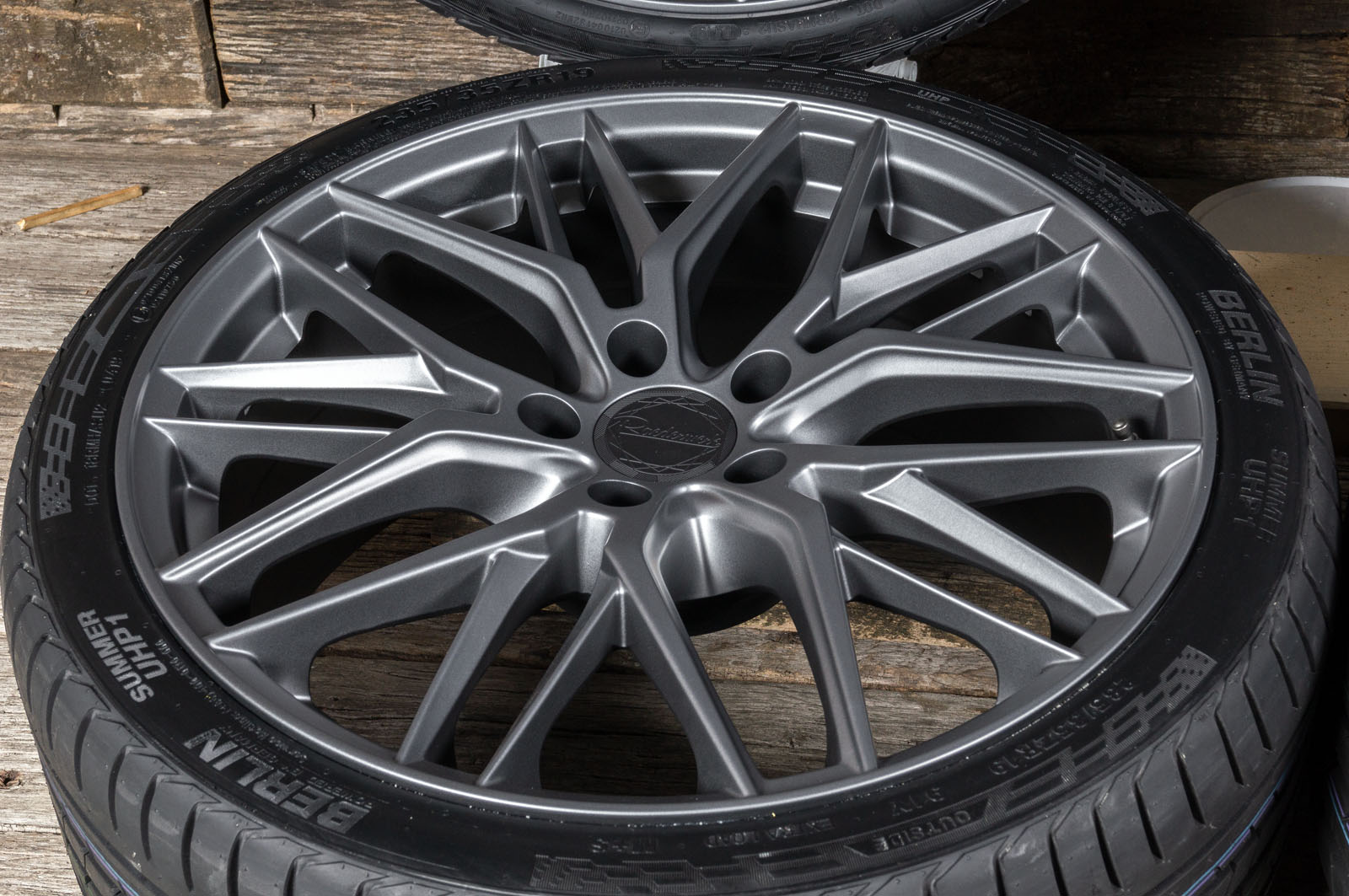 4x neue Sommerkompletträder (montiert und gewuchtet) in 19 Zoll - Felge: RW01 8,5x19 ET35 5x120 Grey Matt - Reifen: Tageseinkauf (Tracmax, Tristar, Fortuna etc.) 245/40 R19 - 1x ABE/Gutachten - 4x Nabendeckel Raederwerk - gegen Aufpreis mit Reifendrucksensoren RDKS lieferbar