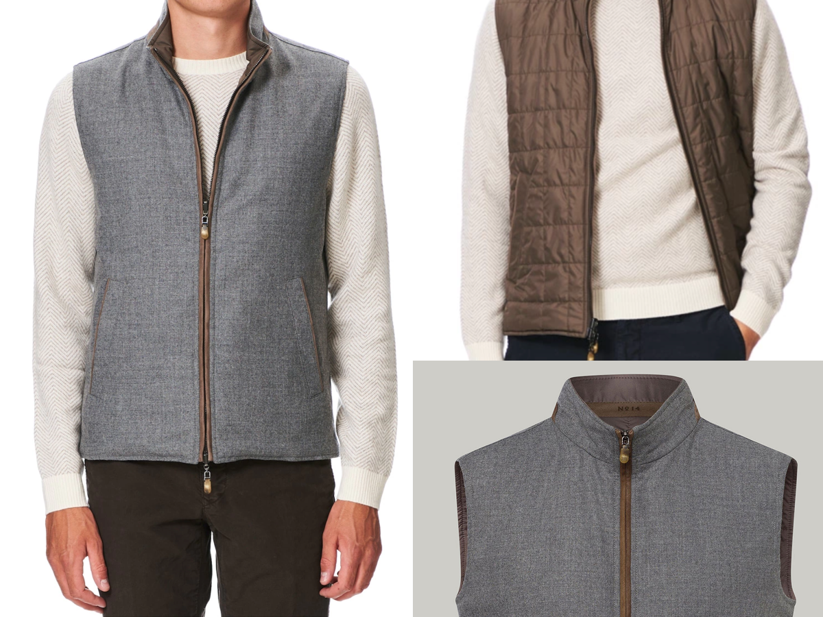 - Reversing between plush faux fur and refined wool, this zip-up vest is a sleek and versatile layer.