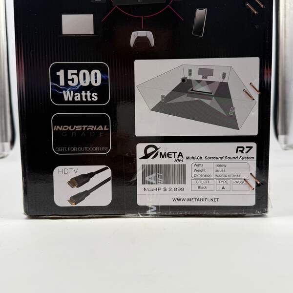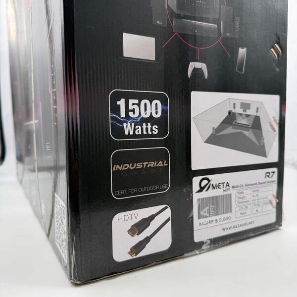 Experience powerful audio performance with the Meta HiFi R7, an elite multi-channel surround sound system ingeniously engineered to deliver 1500 Watts of total system power. This impressive output transforms any space into a high-fidelity soundstage perfect for movies, gaming, and professional audio reproduction. With a dedicated 800W subwoofer, two satellite speakers rated at 250W each, and a center channel at 200W for crystal-clear dialogue, the R7 creates an immersive auditory experience.