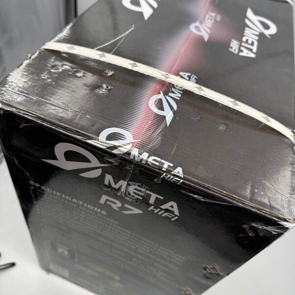 This Meta HiFi R7 speaker features a sophisticated black finish, highlighting its modern design. It is brand new in the box, ensuring pristine condition ready for your home entertainment setup.
