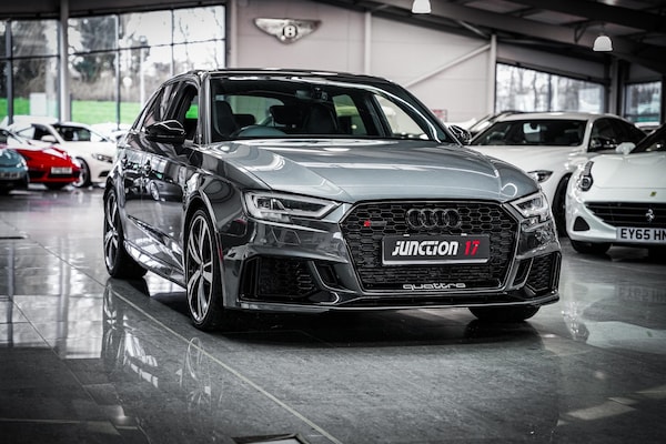 TEXT, CALL OR WHATSAPP, *CLICK - BUY - COLLECT* FINANCE AVAILABLE! HPI CLEAR! Junction 17 Cars now have to offer a stunning Audi RS3 2.5 TFSI Audi Sport Edition Sportback S Tronic quattro Euro 6 (s/s) 5dr.... Finished in Daytona Grey and complemented by Black Fine Nappa Leather Upholstery...Fantastic Specification..Bang and Olufsen Sound System.. Sunroof...Privacy Glass.. Heated RS Super Sports Seats with Diamond Stitching.. Navigation.. Cruise Control.. Parking Sensors.. 19'' Alloys.. and more.*ANY THIRD PARTY VEHICLE INSPECTIONS ARE WELCOME* *WE WILL BEAT ANY CAR VALUATION SITE FOR YOUR PART EXCHANGE* Junction 17 Cars (Runner Up at the Motor Trader Independent Dealer Awards 2019 nominated for “Car Supermarket of the Year” Award) is a unique family run business with over £7 million’s worth of stock currently split over our purpose-built showroom in Yaxley, Peterborough and our new showrooms in Grantham and Rugby. Our vehicles can also be reserved with a £99 refundable holding deposit to ensure that they are professionally prepared/valeted for your viewing pleasure. Competitive HP and PCP packages are available with decision/approval available within 15 minutes. We also offer comprehensive warranties over a variety of different terms as well as Williams Ceramic Coating, Flexfuel Engine Carbon Cleaning and more. **NATIONWIDE DELIVERY AVAILABLE** Payment : maximum £500 card payment balance by bank transfer