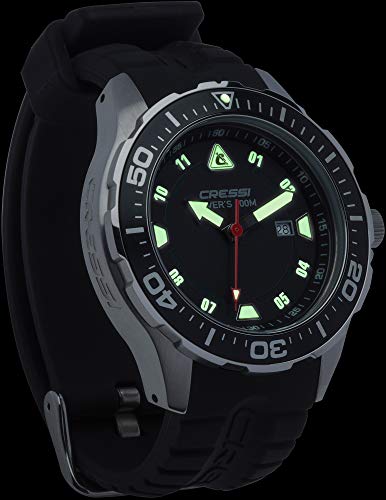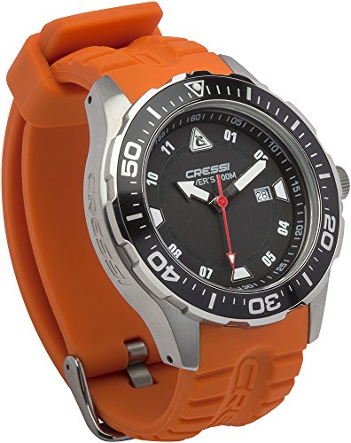 Cressi Manta, Orologio Professionale Subacqueo 100 m/10 ATM, Silver/Nero/Arancio, Taglia Unica