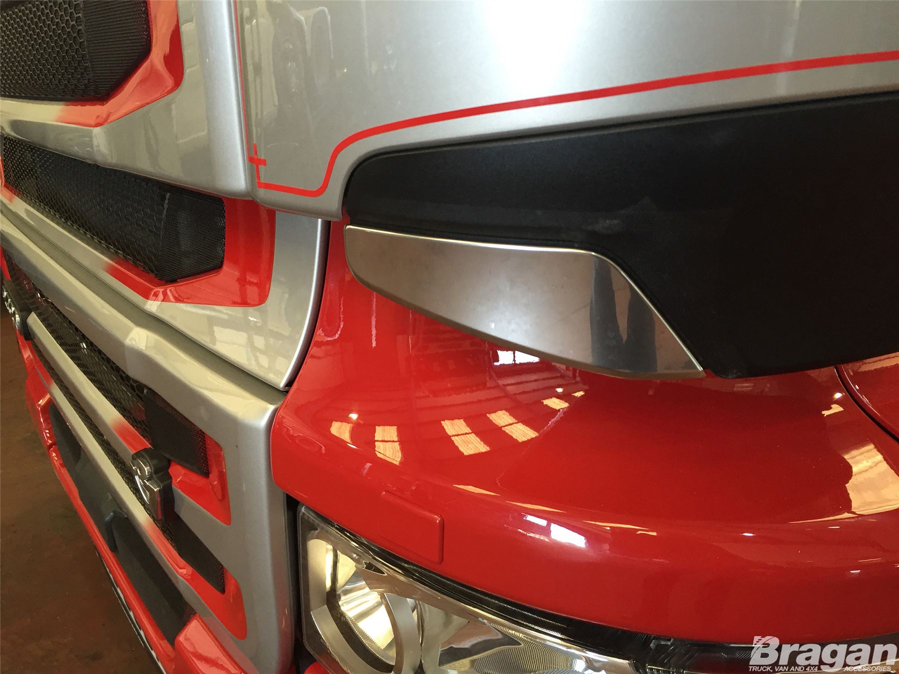 Acciaio inossidabile lucidato di alta qualità Finiture cromate del deflettore angolare per Scania ottimizzata. Questi eleganti e attraenti rivestimenti cromati per deflettore angolare faranno sembrare il tuo camion al top delle specifiche a una frazione del costo degli articoli originali ma con la stessa alta qualità.