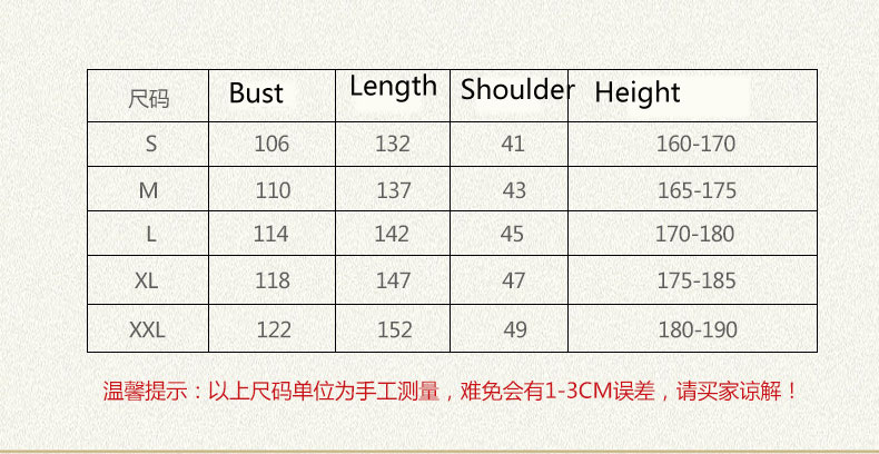 Please allow slight (±2cm)manual measurement deviation for the data.