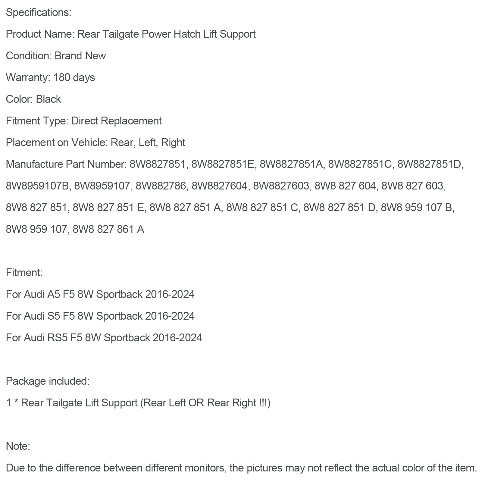 Product Name: Rear Tailgate Power Hatch Lift Support