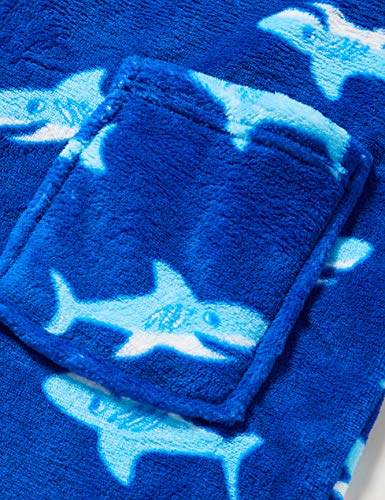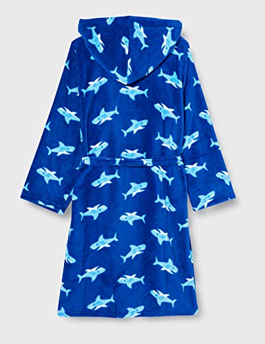 Playshoes Kuschelweicher Fleece-Bademantel, Morgenmantel Hai, Oeko-Tex 100 Capo d'Abbigliamento, Blu 007, 158/164 Jungen