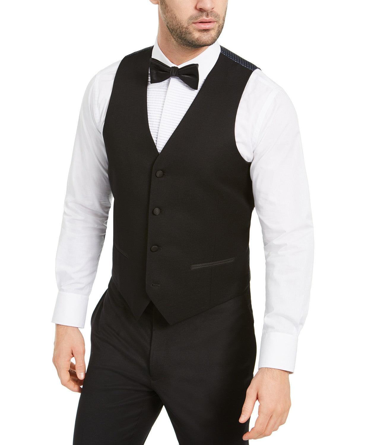 Alfani Mens Slim fit Button-Up Suit Vest XL Black Solid Stretch