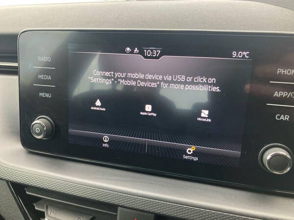 ..Bluetooth system, E-call, Front assist system, PAS, Service indicator, Speed limiter, Wireless Smartlink for Apple CarPlay (wired for Android Auto), 8 Speakers, Auxiliary input socket, DAB Digital radio, Body colour bumpers, Body colour door mirrors and handles, Chrome grille surround, Dimming rear view mirror with black surround, Electrically adjustable and heated door mirrors, Front and rear electric windows, Headlight range control, Heated rear window, LED rear lights - low functionality, LED third brake light, Light sensors, Rain sensor, Rear fog lights, Rear side wing doors, Rear wiper, 12V Accessory socket in centre console, 3 seat bench in 2nd row, Chrome inner door handles, Cloth upholstery, Front head restraints, Glove compartment with illumination, Ice scraper, Isofix child seat fittings on outer rear seats, ISOFIX on front passenger seat, Manual lumbar support for front seats, Rake/reach adjustable steering wheel, Reading lights, Single front passenger seat, Sun visors with illumination on front passenger, Textile floor mats, Third rear headrest, Top tether for front passenger seat, Umbrella in driver's door, 3x3 point rear seatbelts, Airbags - driver and front passenger, ESP, Front passenger airbag deactivation switch, Front side airbags with curtain airbags, Hill hold control, Manual parking brake, Manual rear child locks, One tone horn, Rear disc brakes, Seatbelt reminder for driver an co-driver, Traction control, Tyre pressure monitor, Anti-theft alarm system with interior monitoring, backup horn, towing protection and remote central locking with SAFE system, Anti-theft wheel bolts, Electronic engine immobilizer