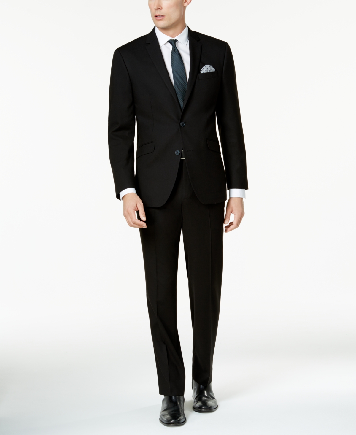 Kenneth Cole Mens Slim fit 2 Piece Suit 42 S / 35 Waist Black Solid Stretch