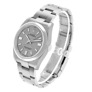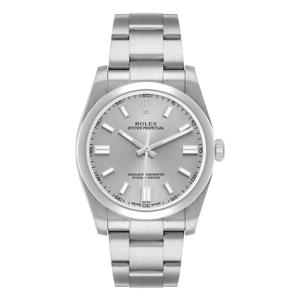 Stainless steel oyster case 36.0 mm in diameter. Rolex logo on the crown. |