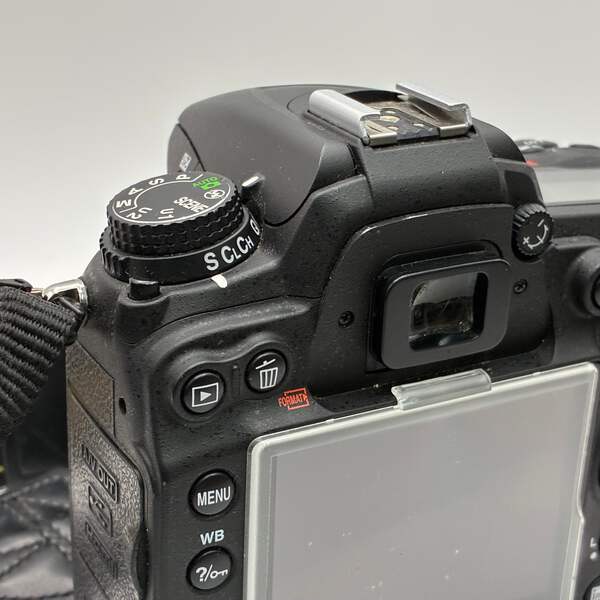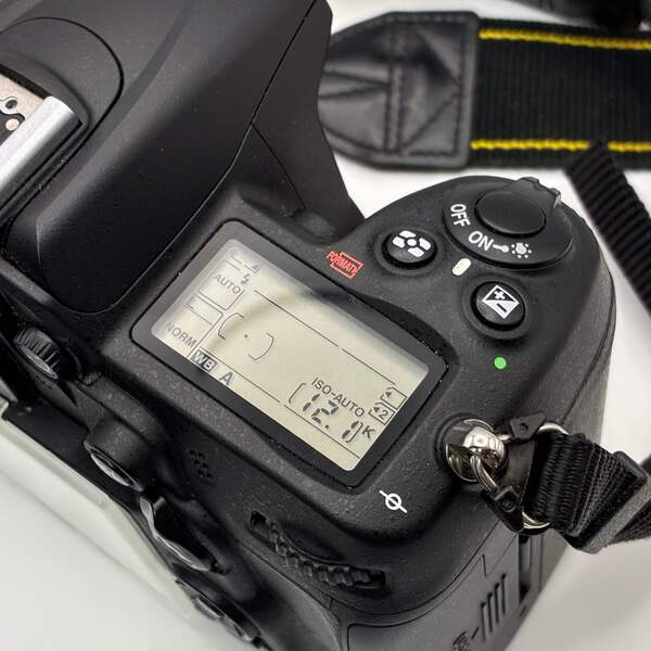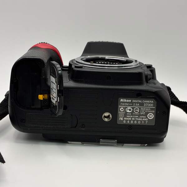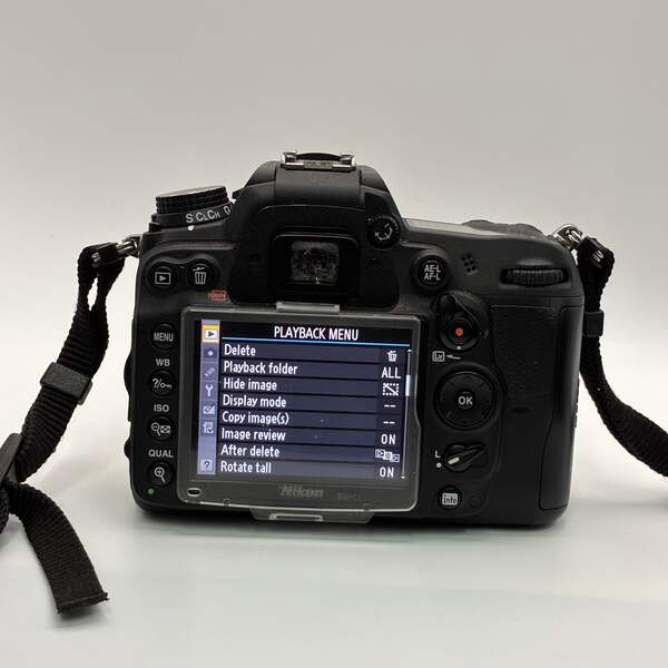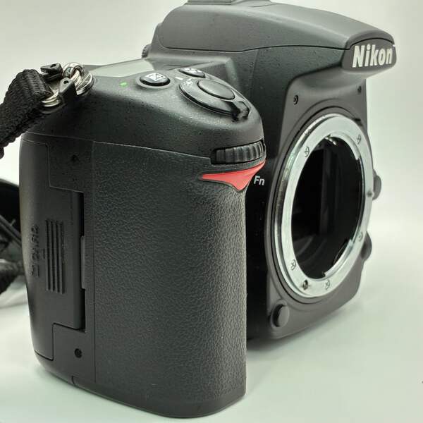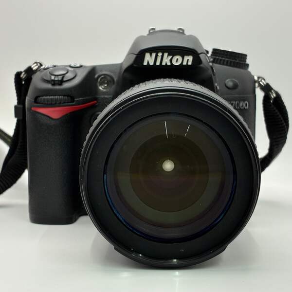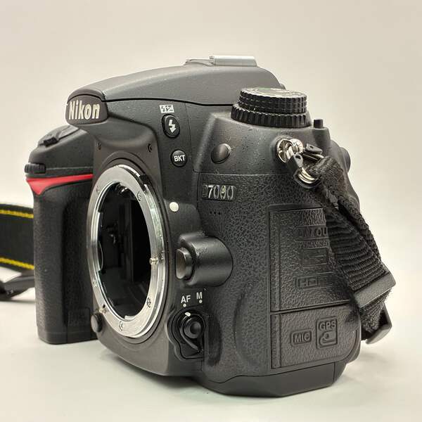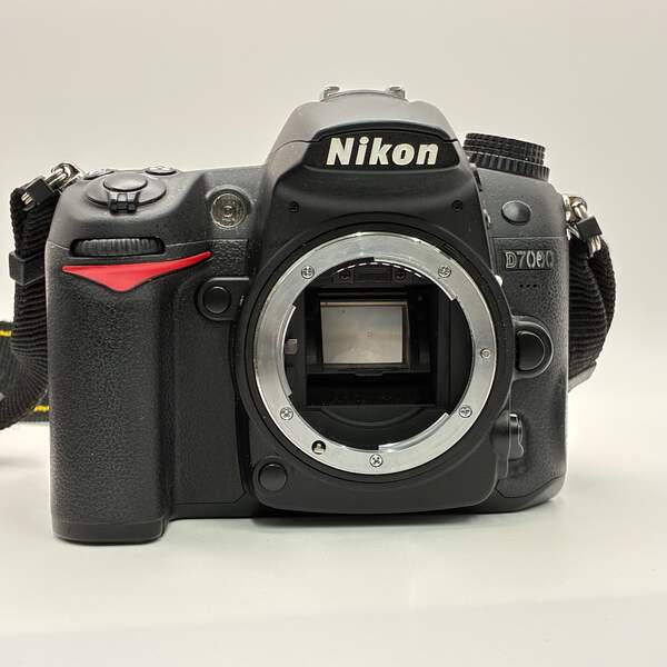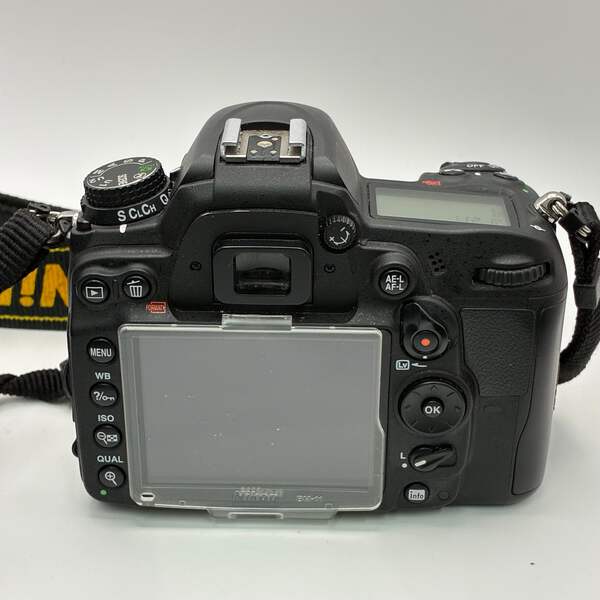 This Nikon D700 is in good working condition with normal signs of use. The camera body and built-in flash function properly, and the included 18–105mm lens is clear with no scratches or haze. Lens cap and charger are not included.