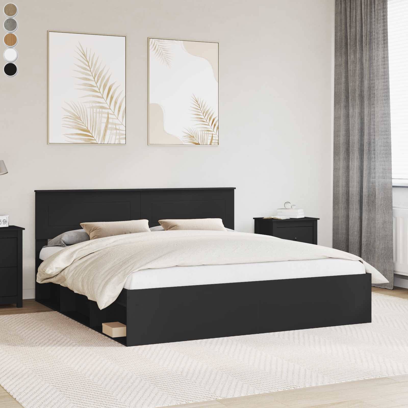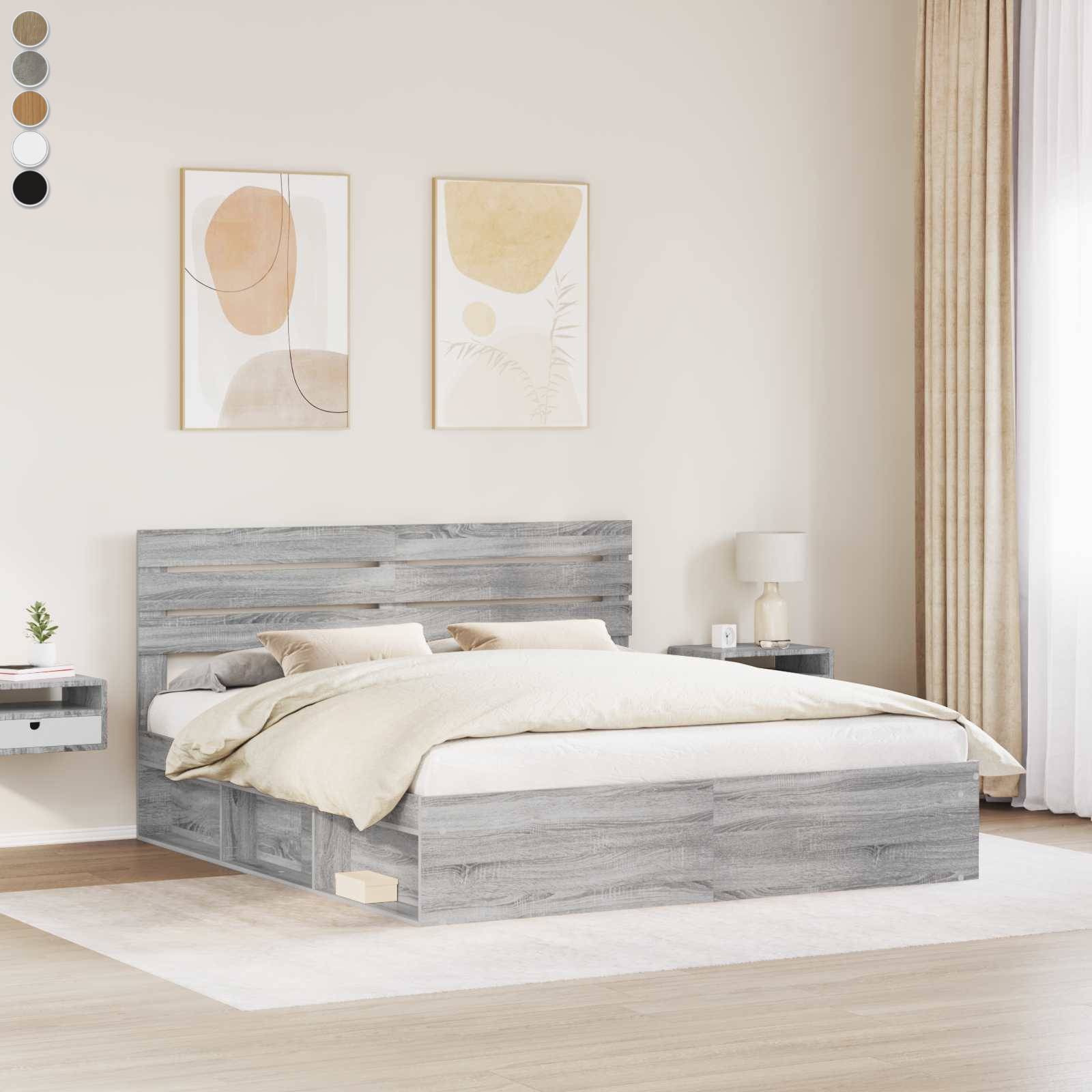 Add a modern touch to your bedroom with this bed frame! It makes a practical and decorative addition to your living space. Durable material: The bed frame is made of engineered wood. The engineered wood is of exceptional quality with a smooth surface and also features strength, stability, and resistance to moisture.Sturdy slats: The plywood slats provide good weight distribution, ensuring the mattress stays in place with every twist and turn of your body during sleep.Storage function: The included bed compartments provide ample storage space for storing your essentials, keeping your room clean and tidy. Good to know:A mattress is not included with this bed. We do offer a various selection of mattresses. You can check our shop for a matching mattress.