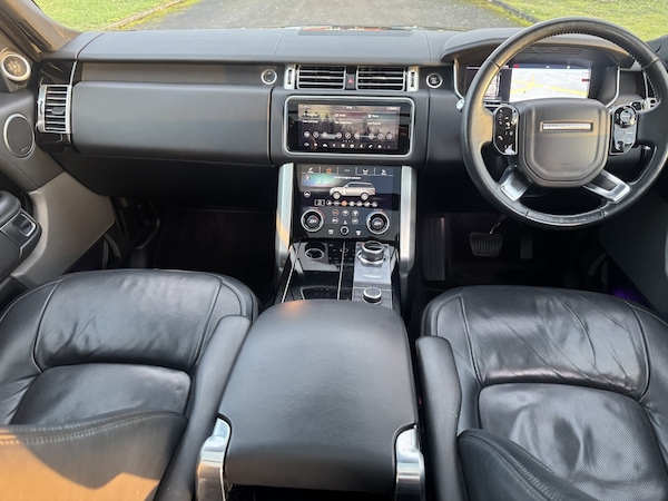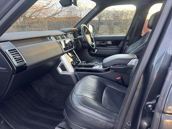 This stunning Range Rover is our directors car for the last 2 years and is a 2018 (18 plate) Vouge SE with lots of great additional options. Above the standard Vouge SE specification the car has a factory black pack including 22 alloys and full size spare wheel, solar attenuating privacy glass including lightly tinted front windows, opening panoramic glass roof, blind spot monitoring, 360 parking sensors, soft close doors, heated and cooled seats in both front and rear, the premium paint is carpathian grey which looks exceptional against the black pack. The interior is ebony black semi aniline leather which is the softer leather and the car has black morzine headlining. The car has configurable colour ambient lighting throughout. The car has been really well maintained throughout its life with regular servicing including having had its cam belt changed last year at around 103000 miles. The car comes with 2 keys and original book pack. Finance on the vehicle will be cleared on handover. Take a look at our hundreds of 5 star reviews across Google, Trust pilot and Facebook to see what other people think of us and see why we are the right place to get your next car from. IF YOU ARE VIEWING THIS ADVERT ON MOTORS GUMTREE EBAY ETC THEN PLEASE TAKE A LOOK AT OUR WEBSITE FOR MORE DETAILS, PHOTOS AND A WALK ROUND VIDEO OF THIS VEHICLE.