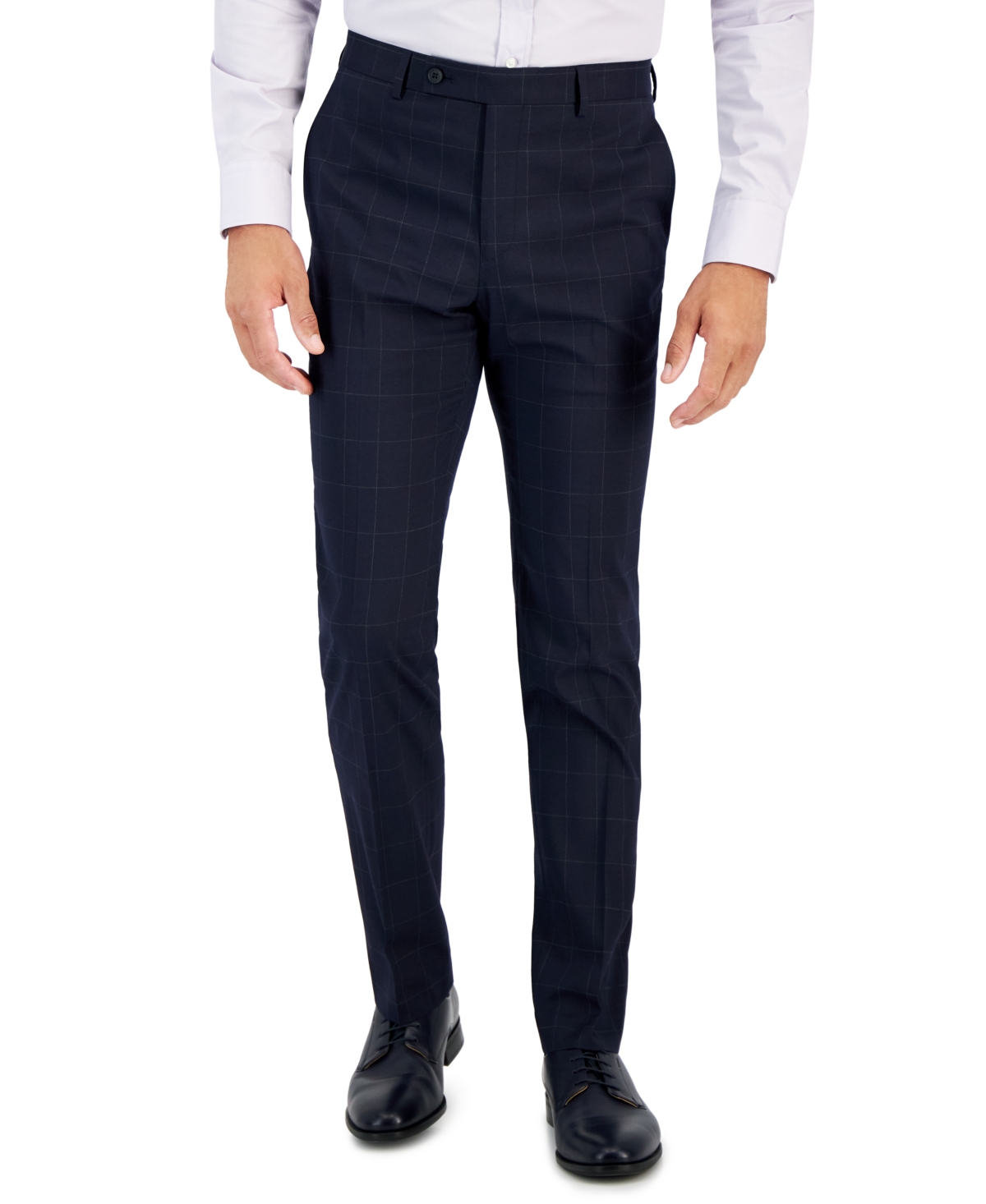 Dkny Mens Modern fit Dress Pants 36 / 32 Navy Blue Check Stretch