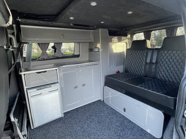 2019 69 REG FORD TRANSIT CUSTOM 2.0 TDCI 130BHP LIMITED 5 SEAT CAMPERVAN NO VAT only 34,000 miles from new with full service history, this camper conversion has, black leather 5 seats included drivers, rock and roll camper bed fitted double cooking gas hob hot and cold water sink pop up top extra bed LED lighting all around multi storage cupboards passenger swivel seat usb and 12v sockets 6 speed manual gear box electric windows, gas bottle fitted just been fully gas checked ready to go, fridge freezer, diesel heater fitted, this vehicle has Air conditioning, cruise control, multifunction steering wheel, bluetooth hands free, apple car play, heated front screen, parking sensors, 6 speed manual gear box, 3 seats, side loading door, colour coded front bumper, touch screen radio, alloy wheels, LOW RATE FINANCE AVAILABLE NATIONWIDE DELIVERY AVAILABE 6 MONTHS WARRANTY ON SCREEN PRICE only £31,995 no vat