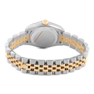 Stainless steel oyster case 26.0 mm in diameter. Rolex logo on the 18K yellow gold crown. |