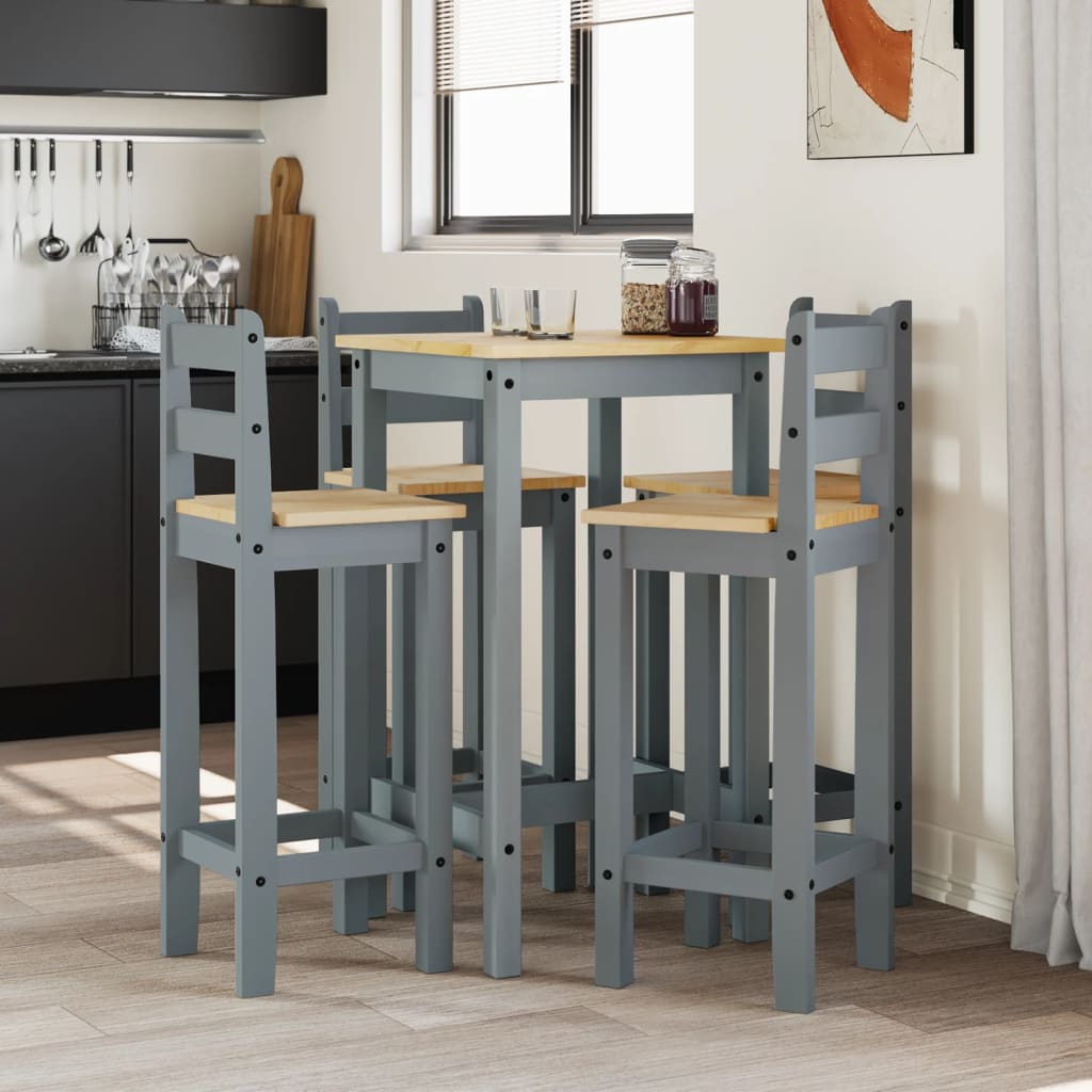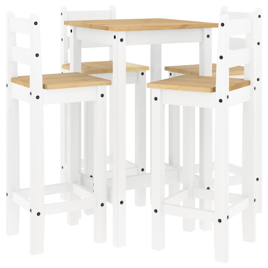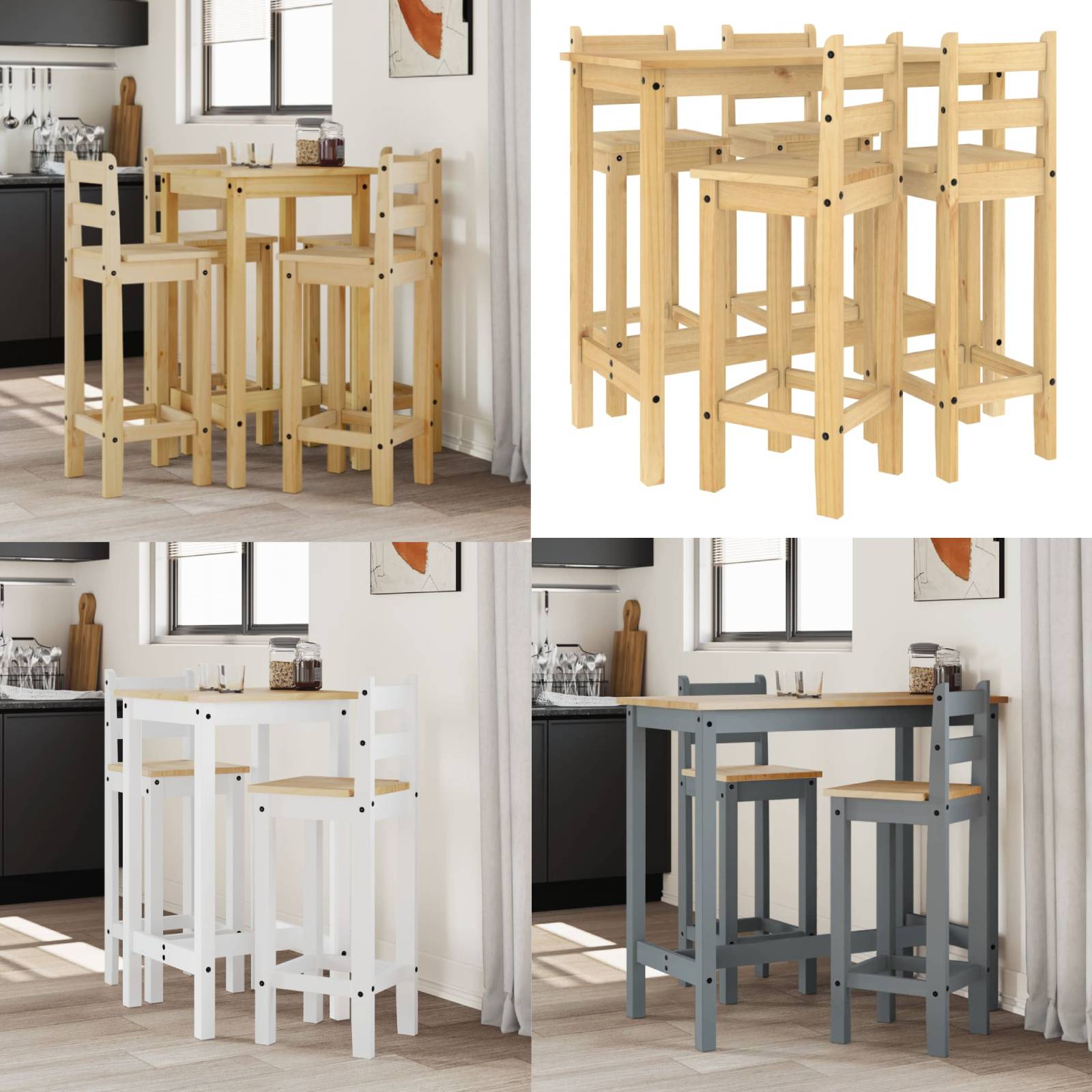 Nehme einen Schluck von deinem Lieblingswein oder genieße eine leckere Mahlzeit mit deiner Familie und deinen Freunden an diesem schönen Holz-Bar-Set! Massives Kiefernholz: Dieses Bar-Set ist aus massivem Kiefernholz gefertigt. Massives Kiefernholz ist ein wunderschönes Naturmaterial. Kiefernholz weist eine gerade Maserung auf und die Aststellen verleihen dem Material seine charakteristische, rustikale Optik.Bequeme Sitzgelegenheit: Der Barstuhl ist mit einer Rückenlehne und einer eingebauten Fußstütze ausgestattet, um dir ein bequemes Sitzerlebnis zu bieten.Robuste Tischplatte: Der Bartisch besitzt eine stabile Tischplatte und bietet den perfekten Platz für Getränke, Speisen oder einige Dekoartikel.Vielseitig einsetzbar: Der Bartisch und die Stühle weisen ein minimalistisches Design auf und finden daher Platz in jedem Raum aus deinem Zuhause. Sie lassen sich in deiner Küche, deinem Esszimmer, Wohnzimmer usw. einsetzen.