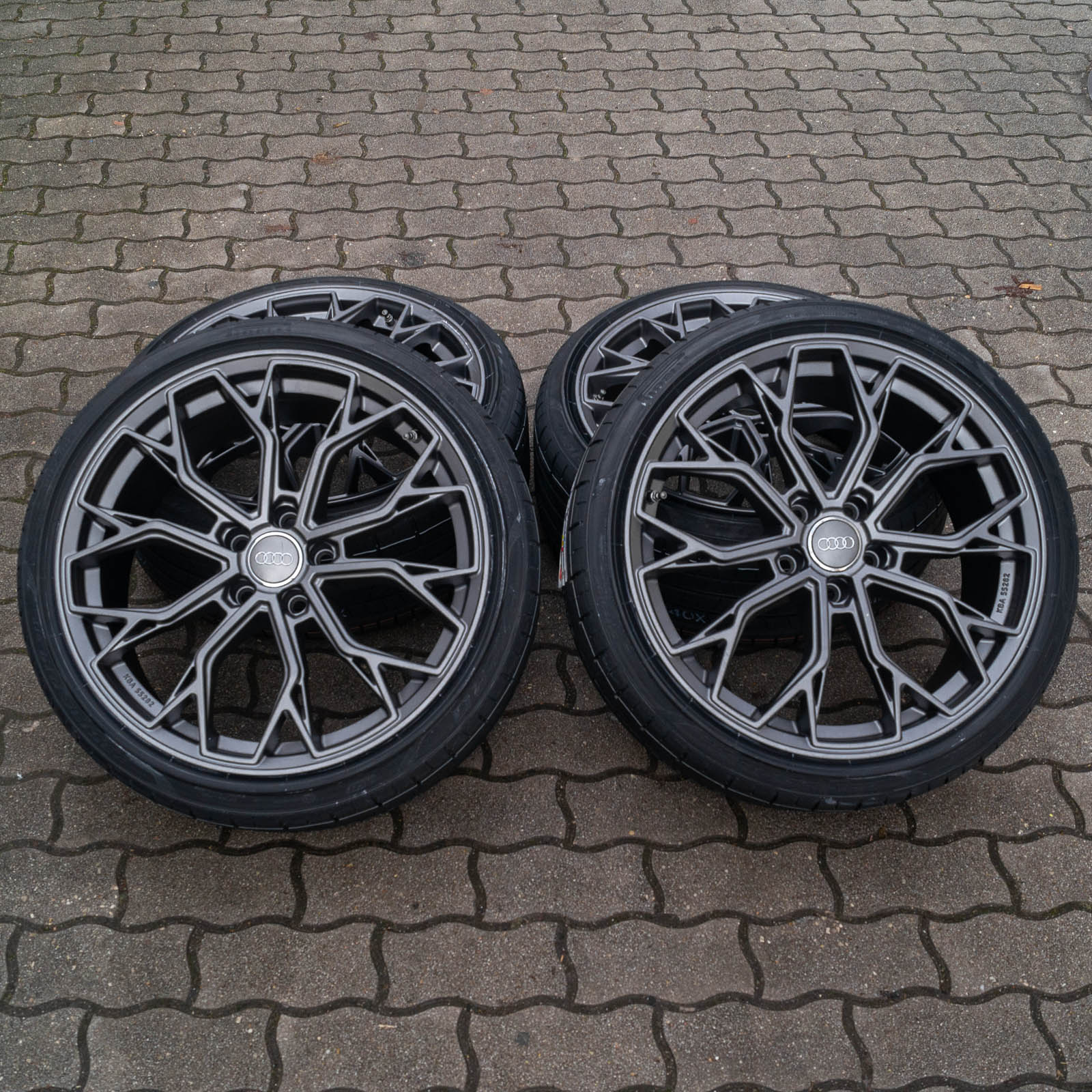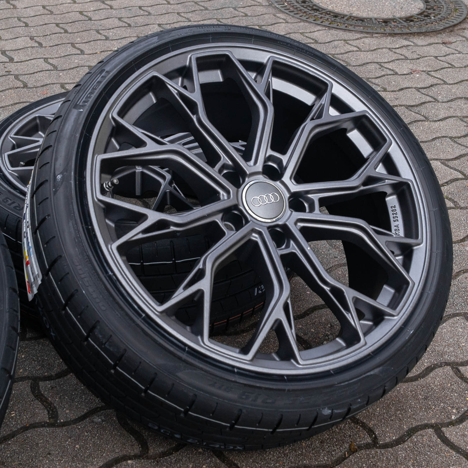 4x neue Sommerkompletträder (montiert und gewuchtet) in 19 Zoll - Felge: RW03 8,5x19 ET30 5x112 Grau Matt - Reifen: Tageseinkauf (Tracmax, Tristar, Fortuna etc.) 225/35 R19 - 1x ABE/Gutachten - 4x Nabendeckel Raederwerk (Audi Deckel nicht enthalten) - gegen Aufpreis mit Reifendrucksensoren RDKS lieferbar