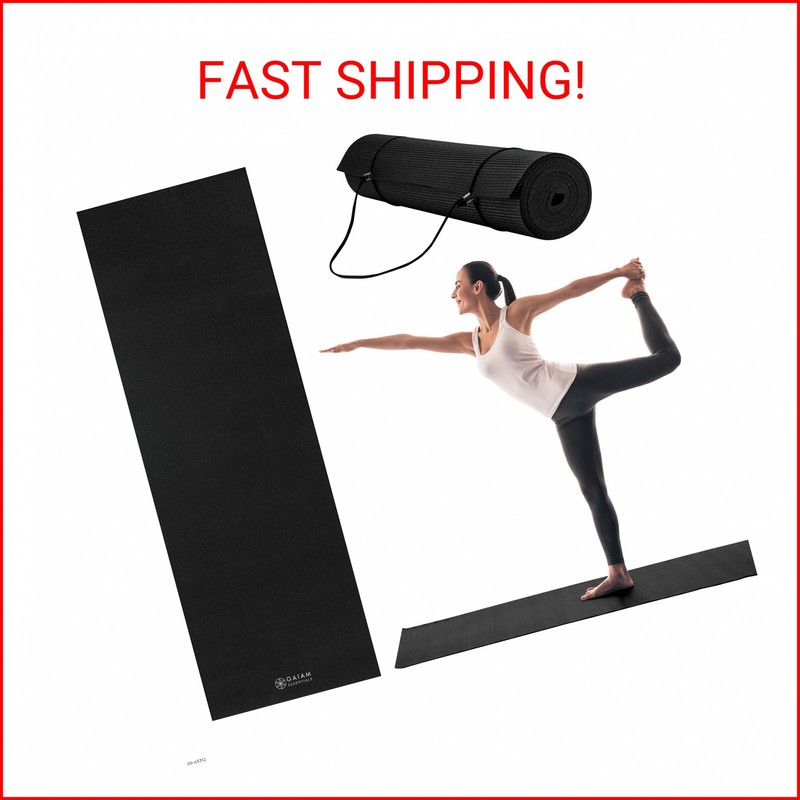 Gaiam Essentials 1/4" Thin (6mm) Yoga & Pilates, Fitness & Exercise Mat with Easy-Cinch Carrier Strap Cusion Support For Fitness and Gym Workouts