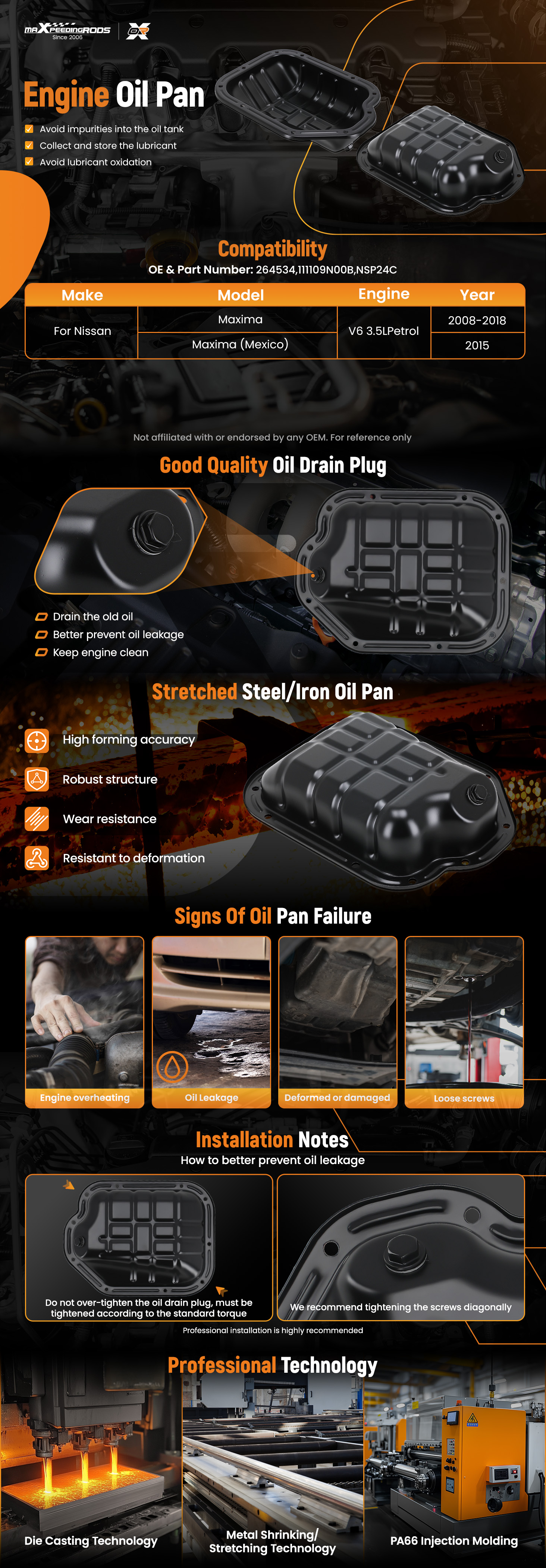 Lower Oil Pan Steel for Nissan Maxima 3.5L 2008-2018 264534 111109N00B