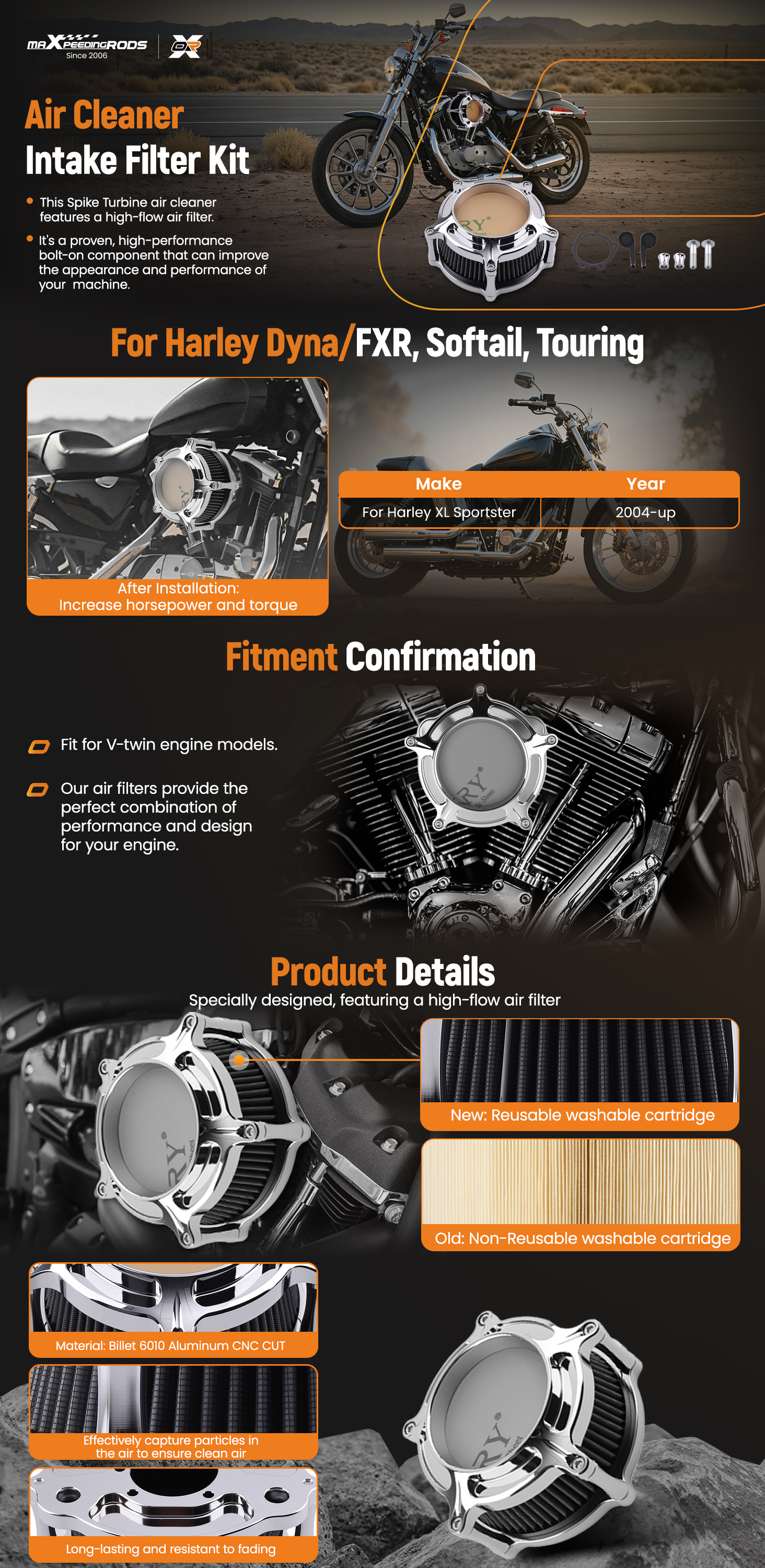 -This air filters provide the perfect combination of performance and design for your V-twin engine.
