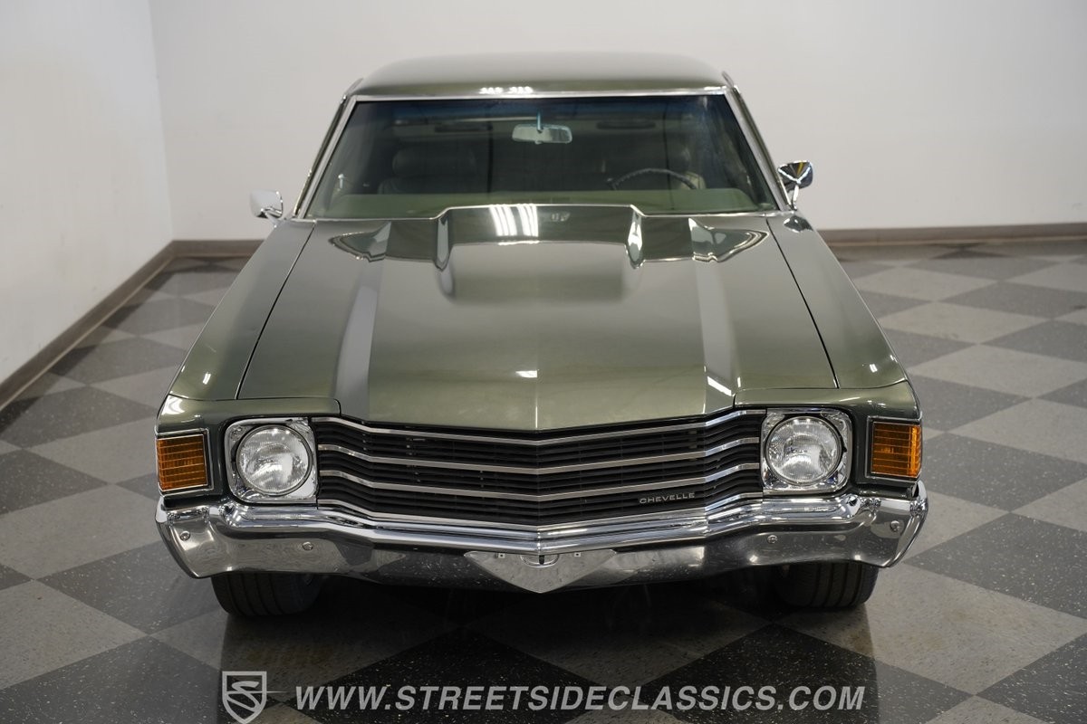 Few names from the Golden Age of muscle cars inspire more intimidation and respect than the Chevelle. In fact, the only way to make one of GM's baddest cars even meaner is to use modern technology to improve its performance. That thinking is why this 1972 Chevrolet Malibu Chevelle 454 Restomod is the perfect choice for anyone looking for a powerful old-school-meets-new-school vehicle that turns heads everywhere it goes. Fully repainted in this unique deep green, this car also sports an SS-style cowl hood and big American Racing Torq Thrust II polished wheels to give it an even more imposing presence.